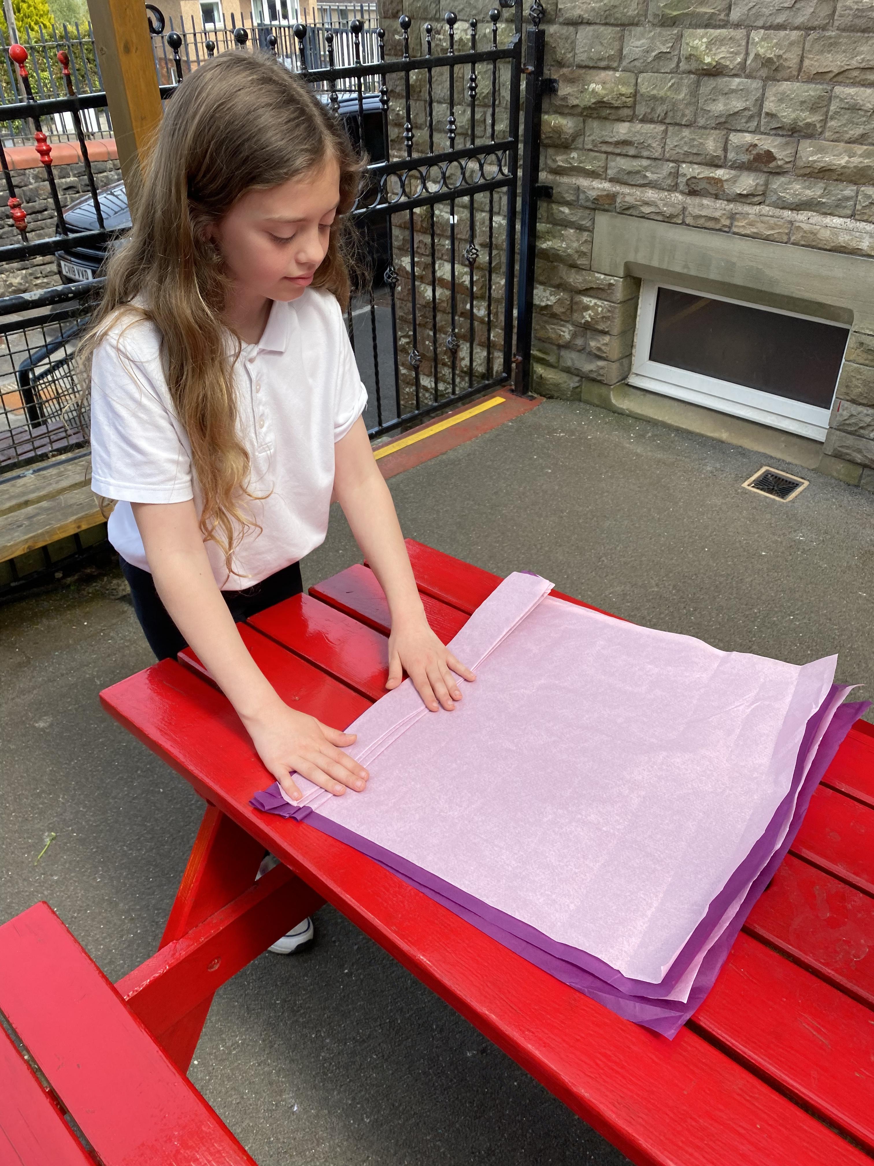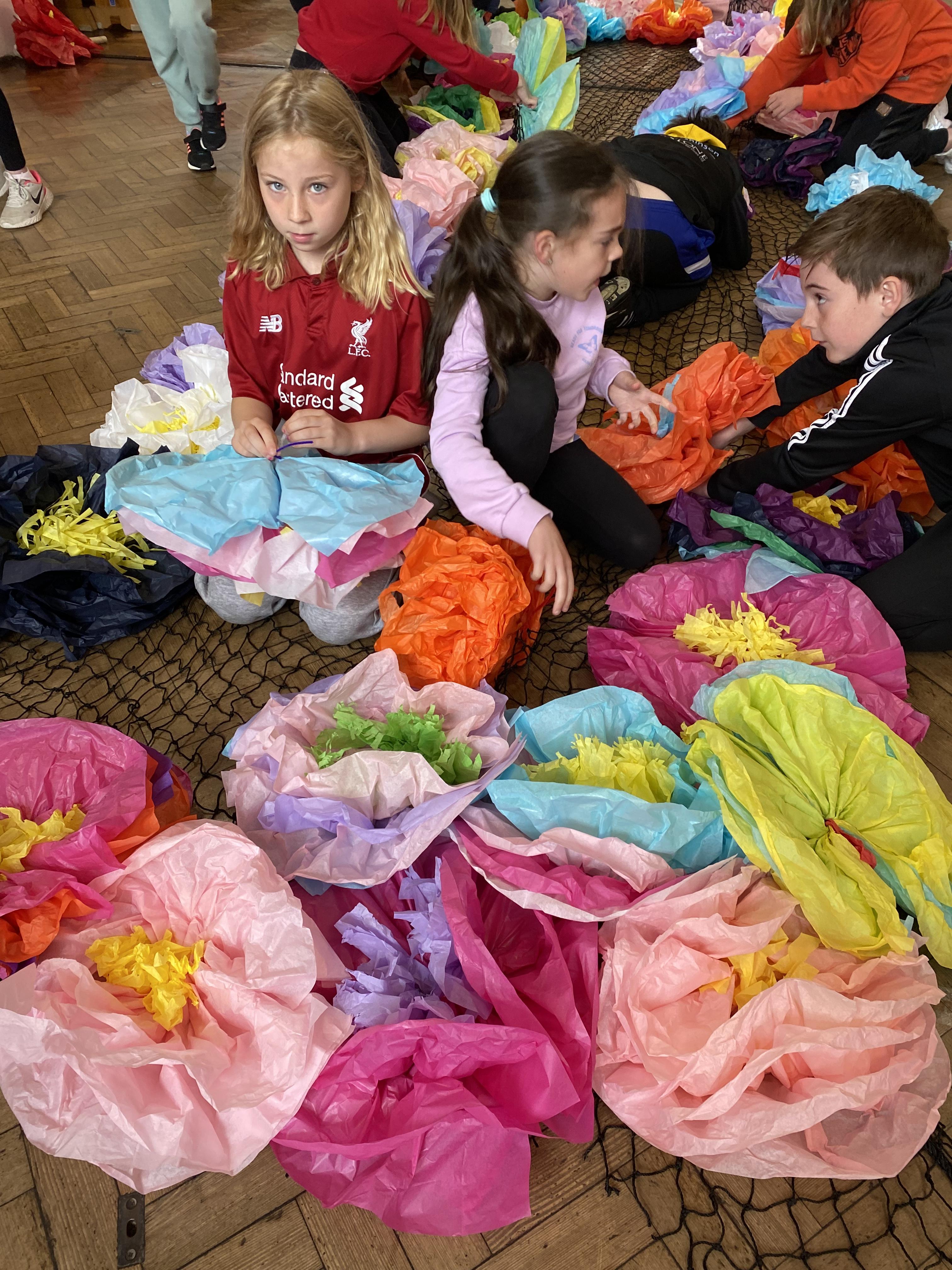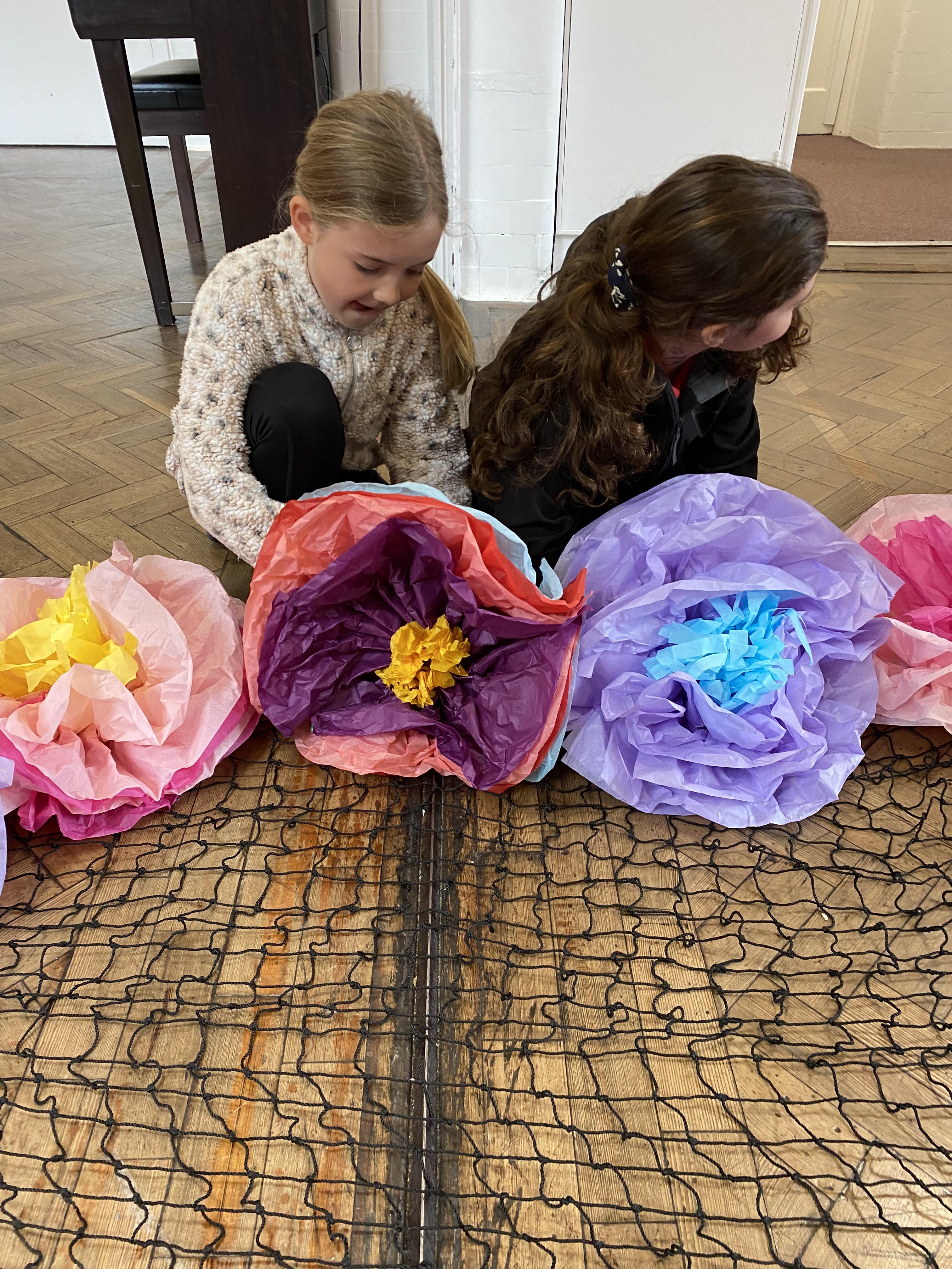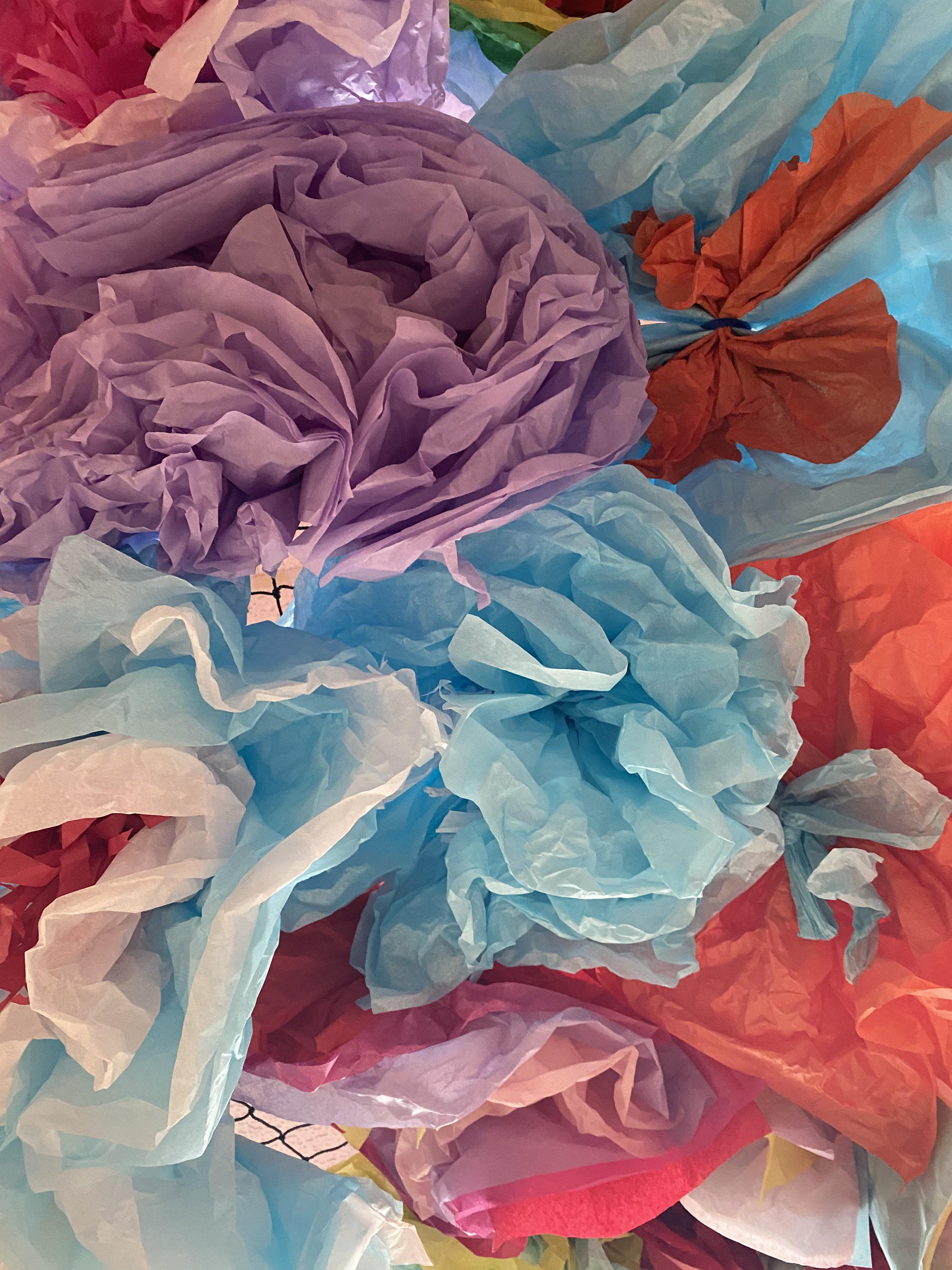 We made some hot-air balloons out of crepe paper, then used a hair dryer to heat up the air inside them
