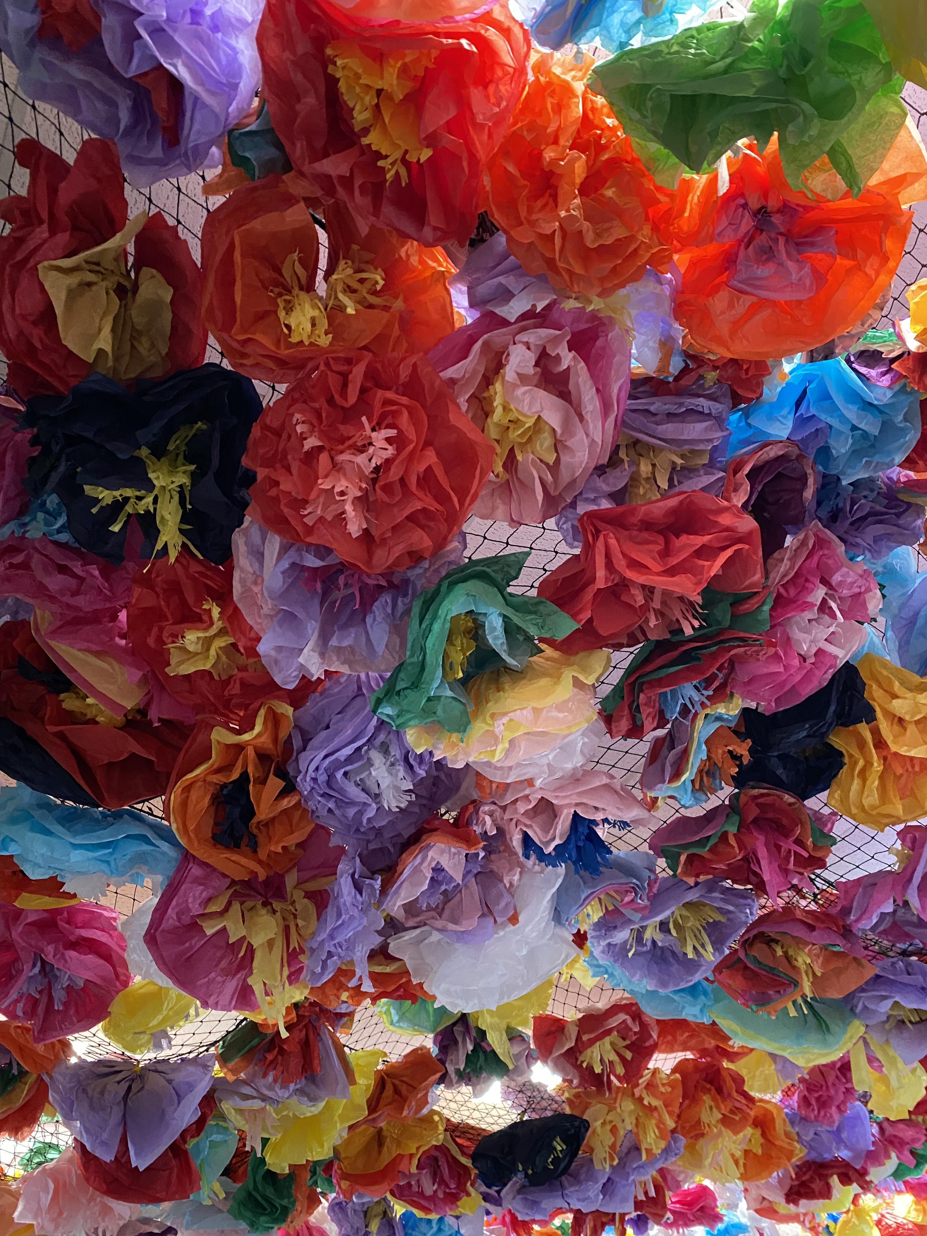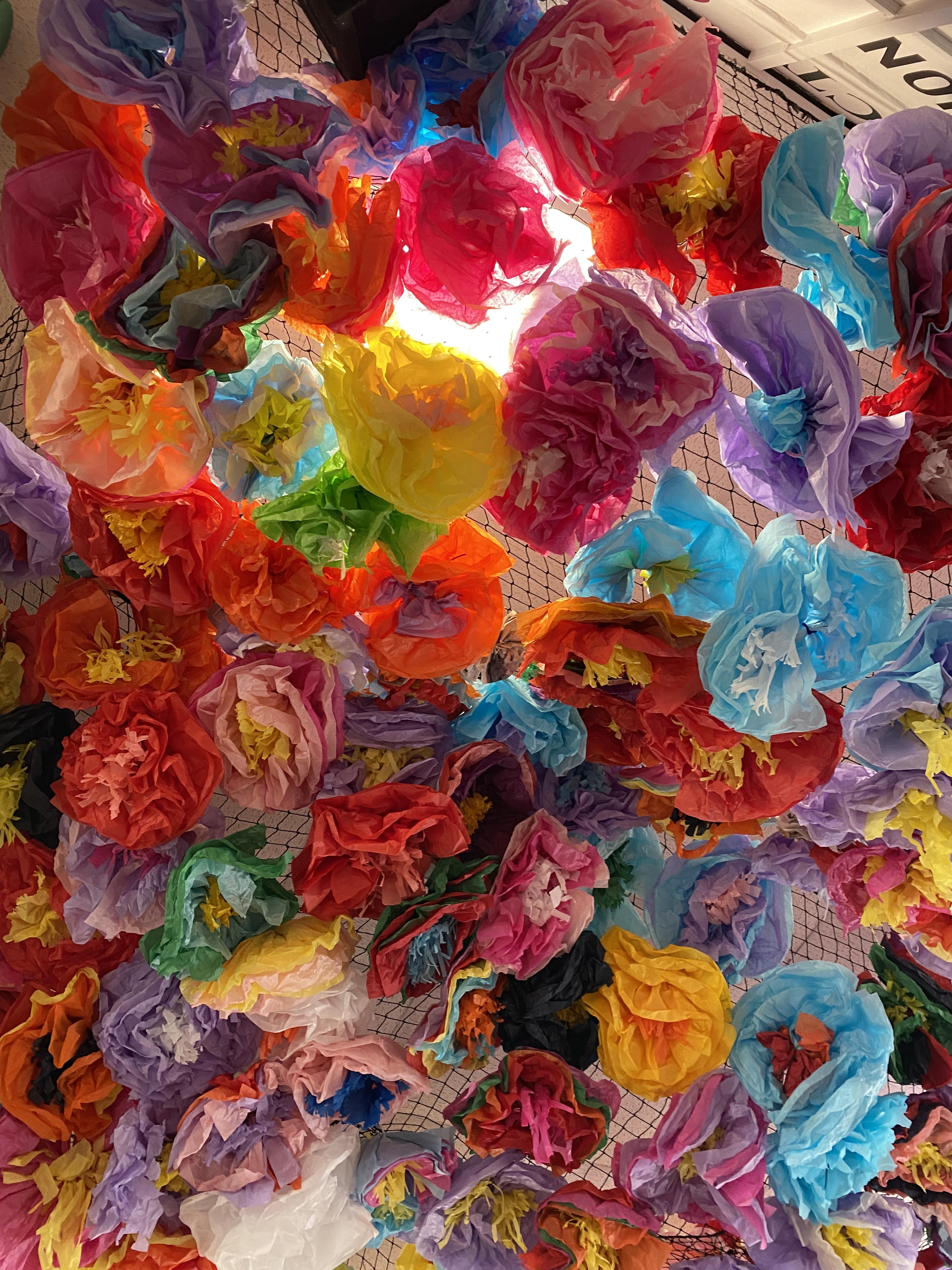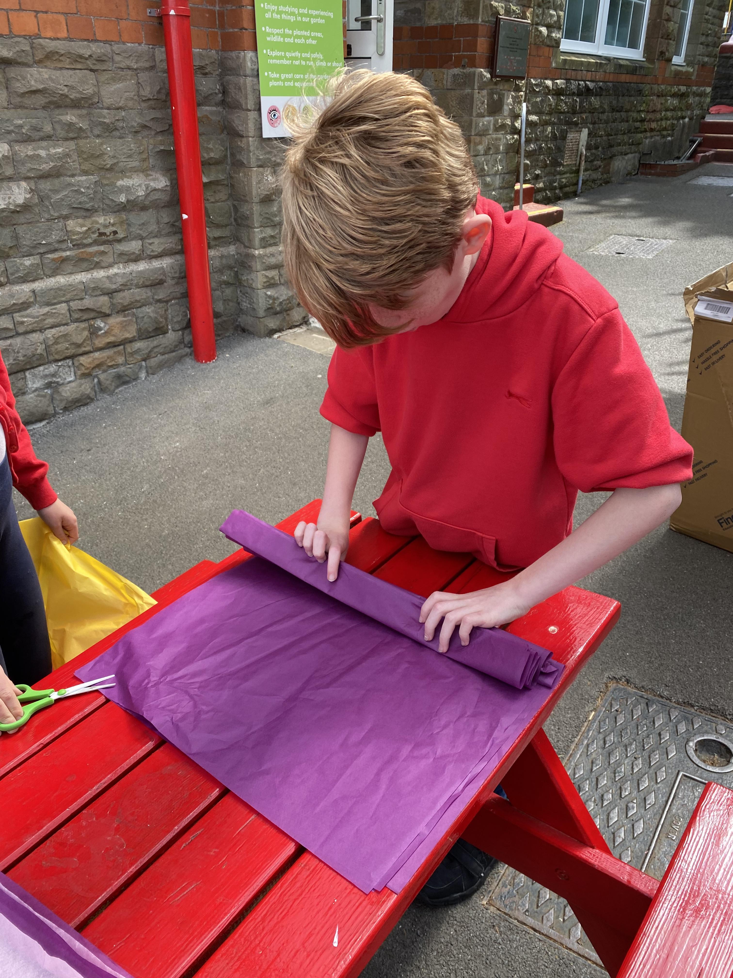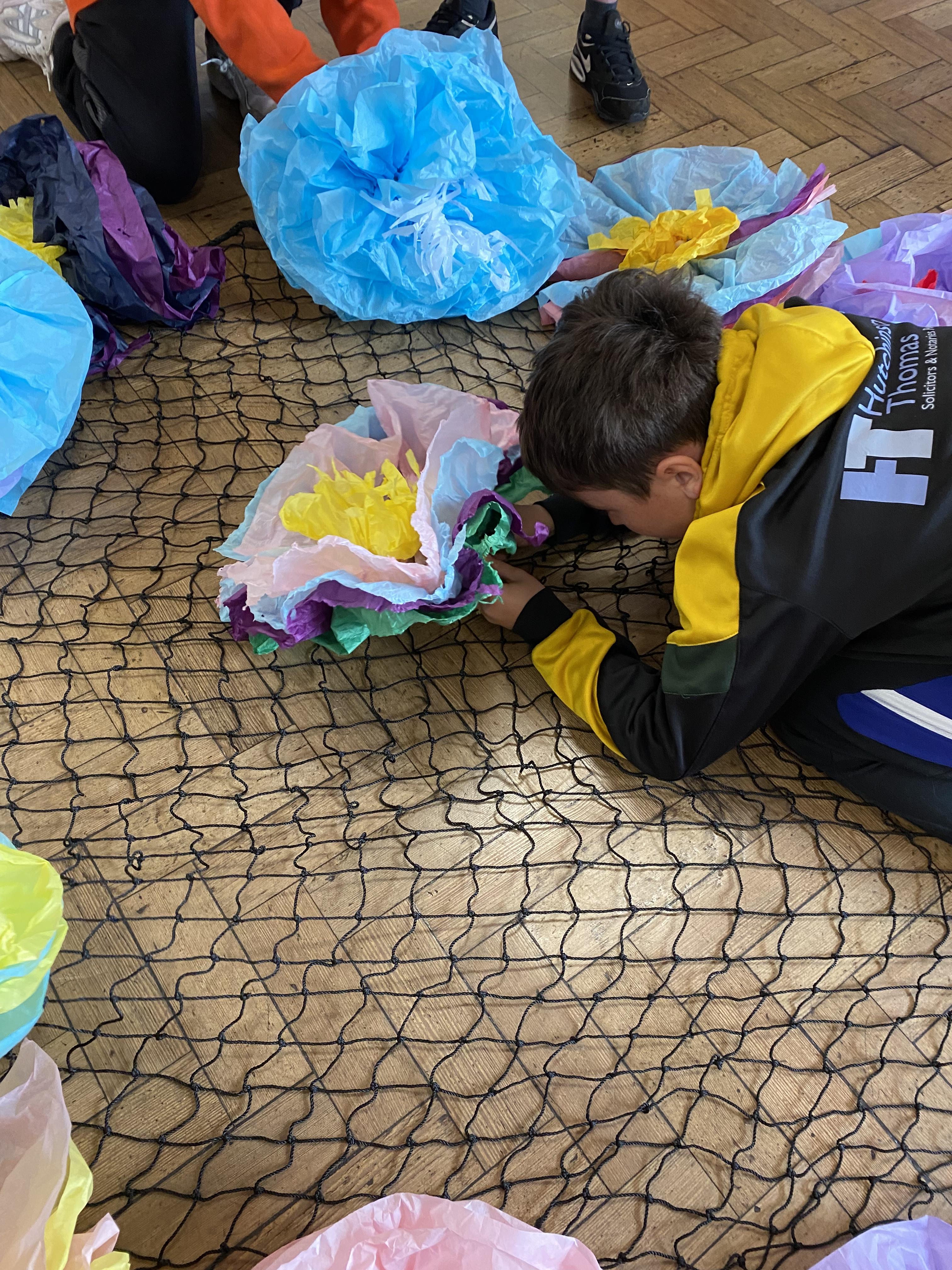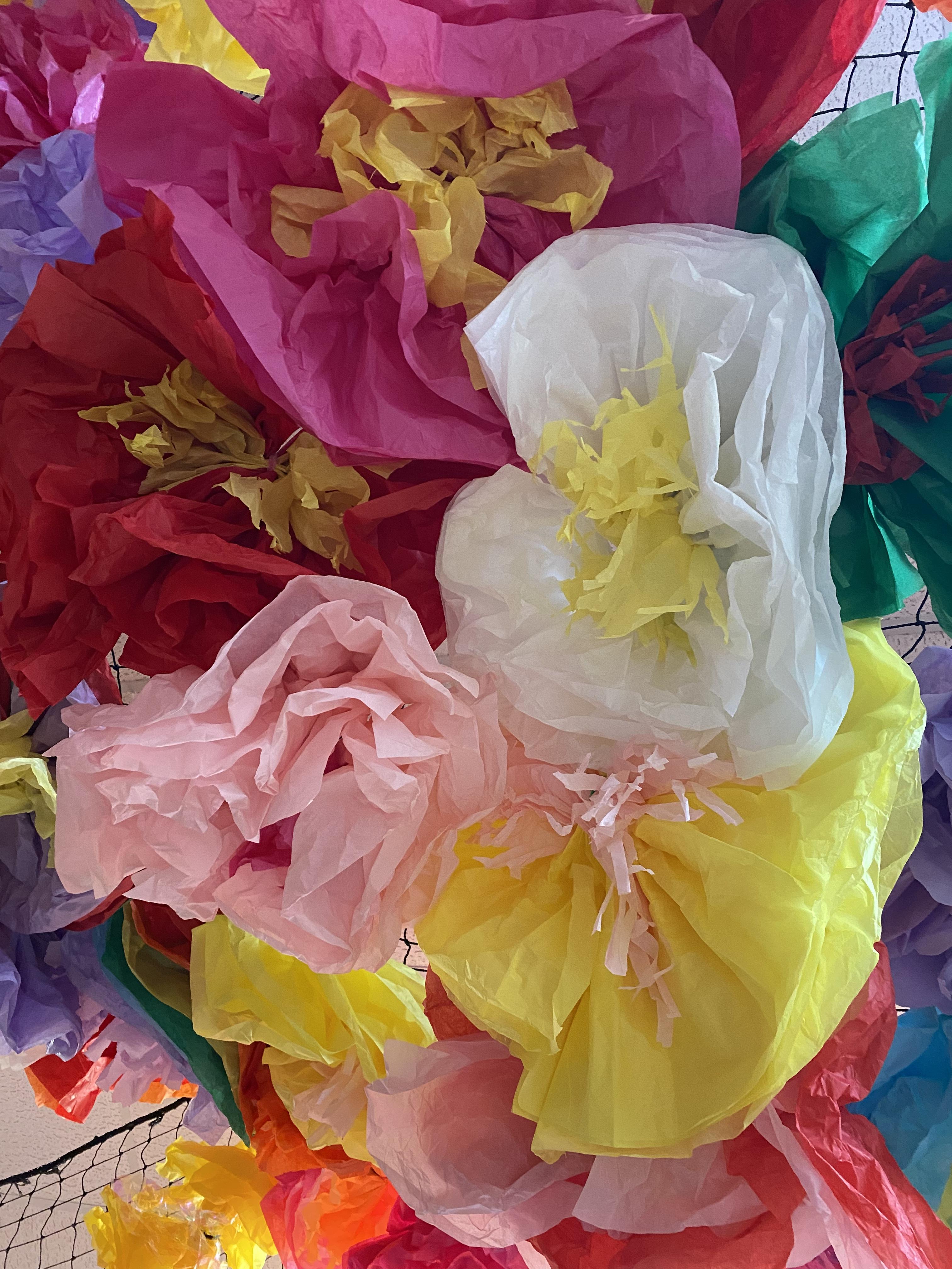 We made some hot-air balloons out of crepe paper, then used a hair dryer to heat up the air inside them