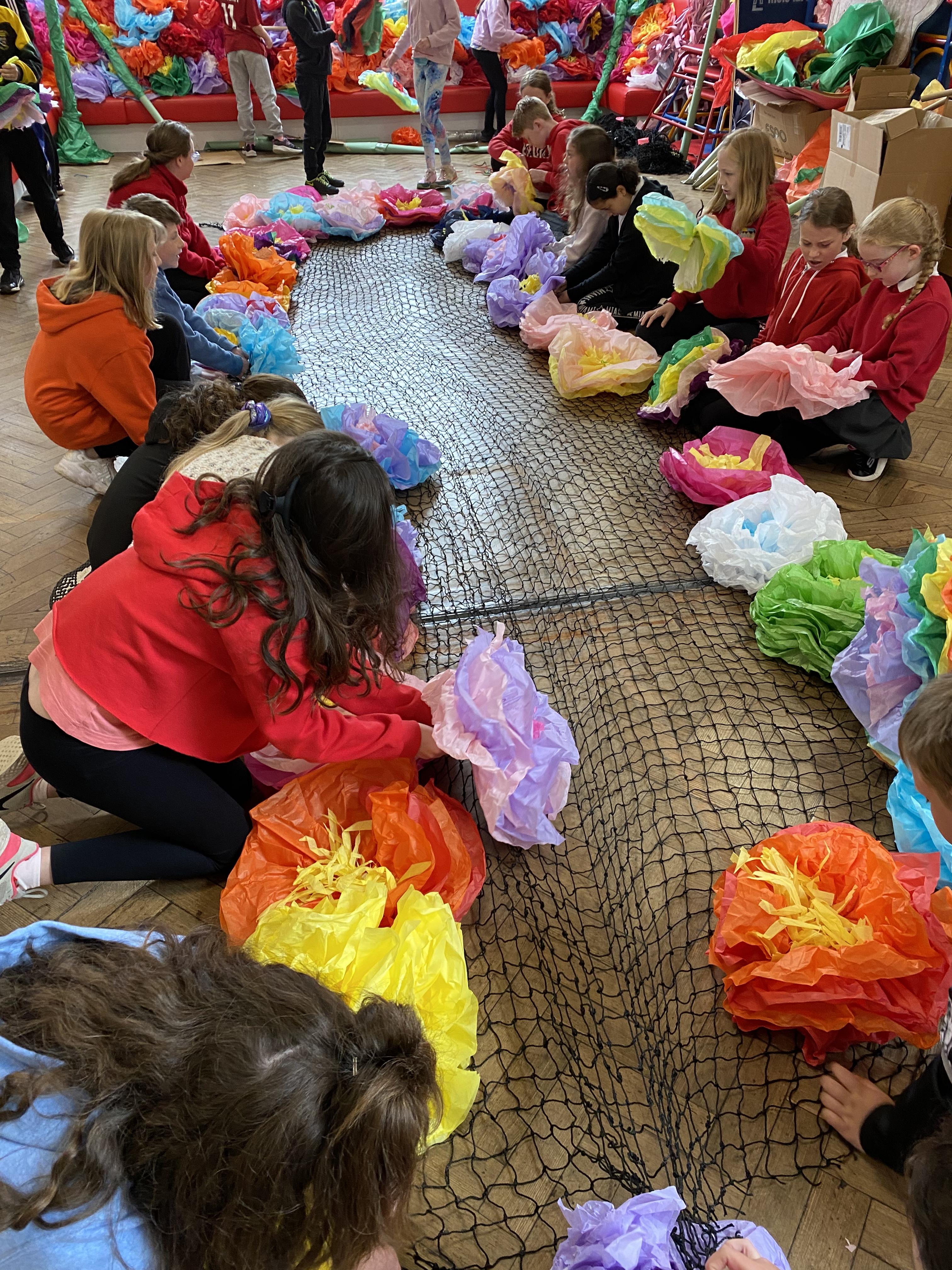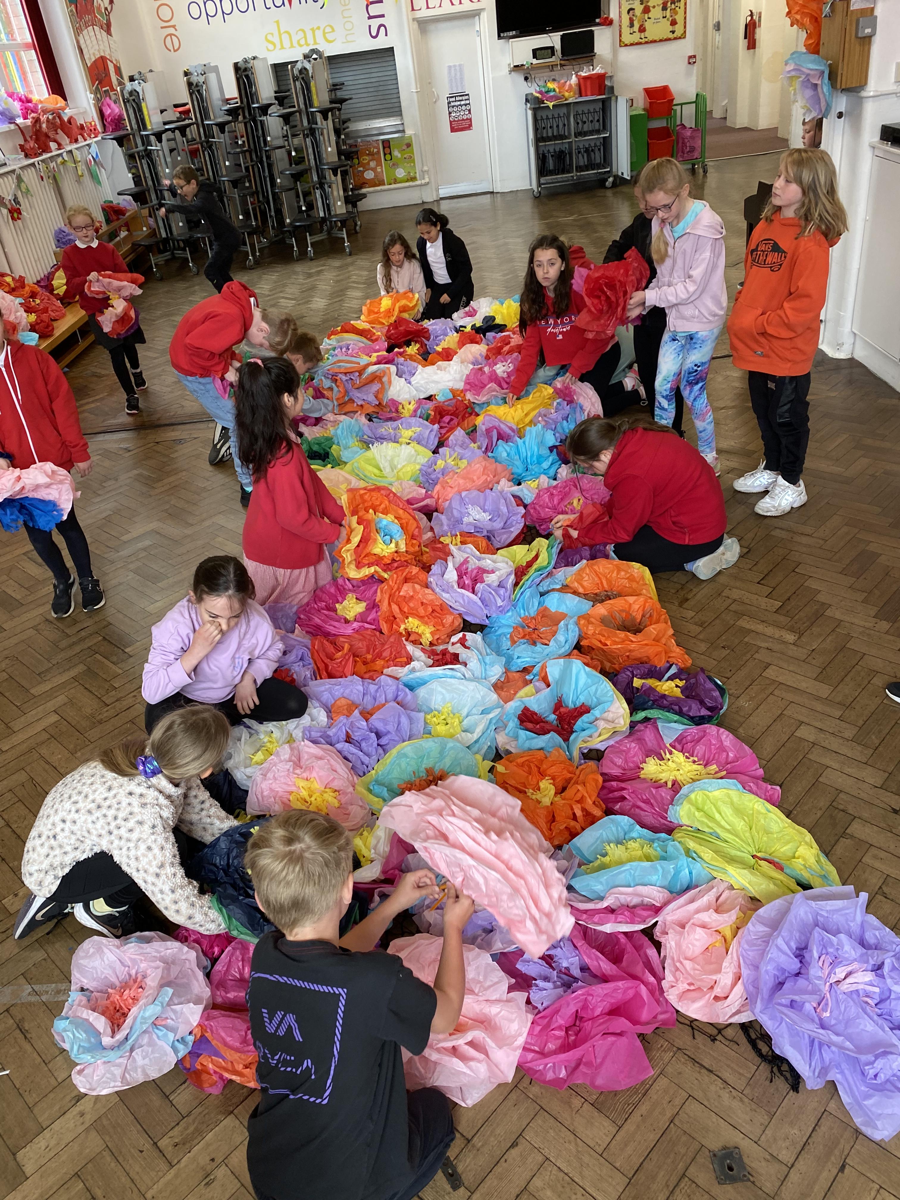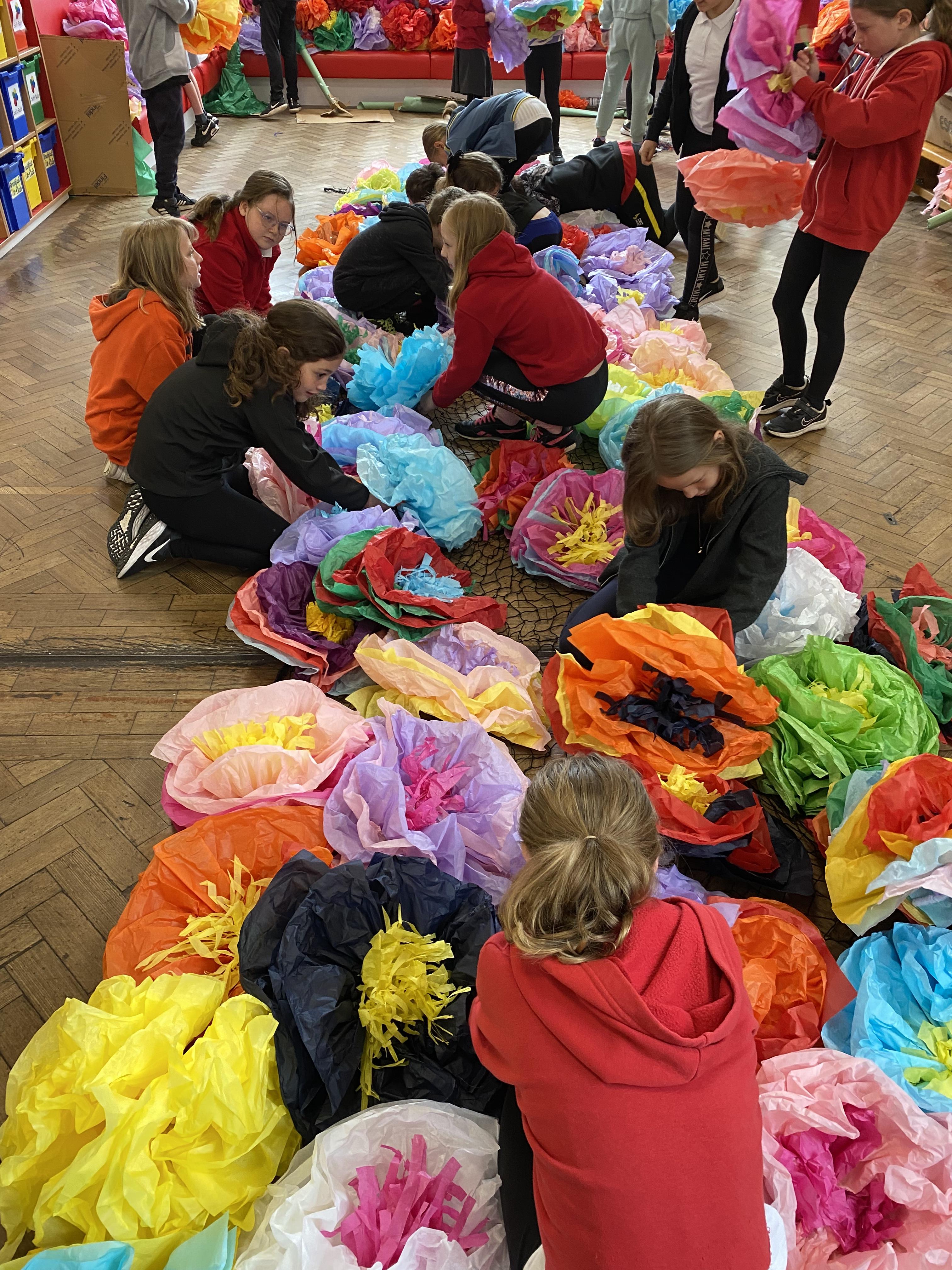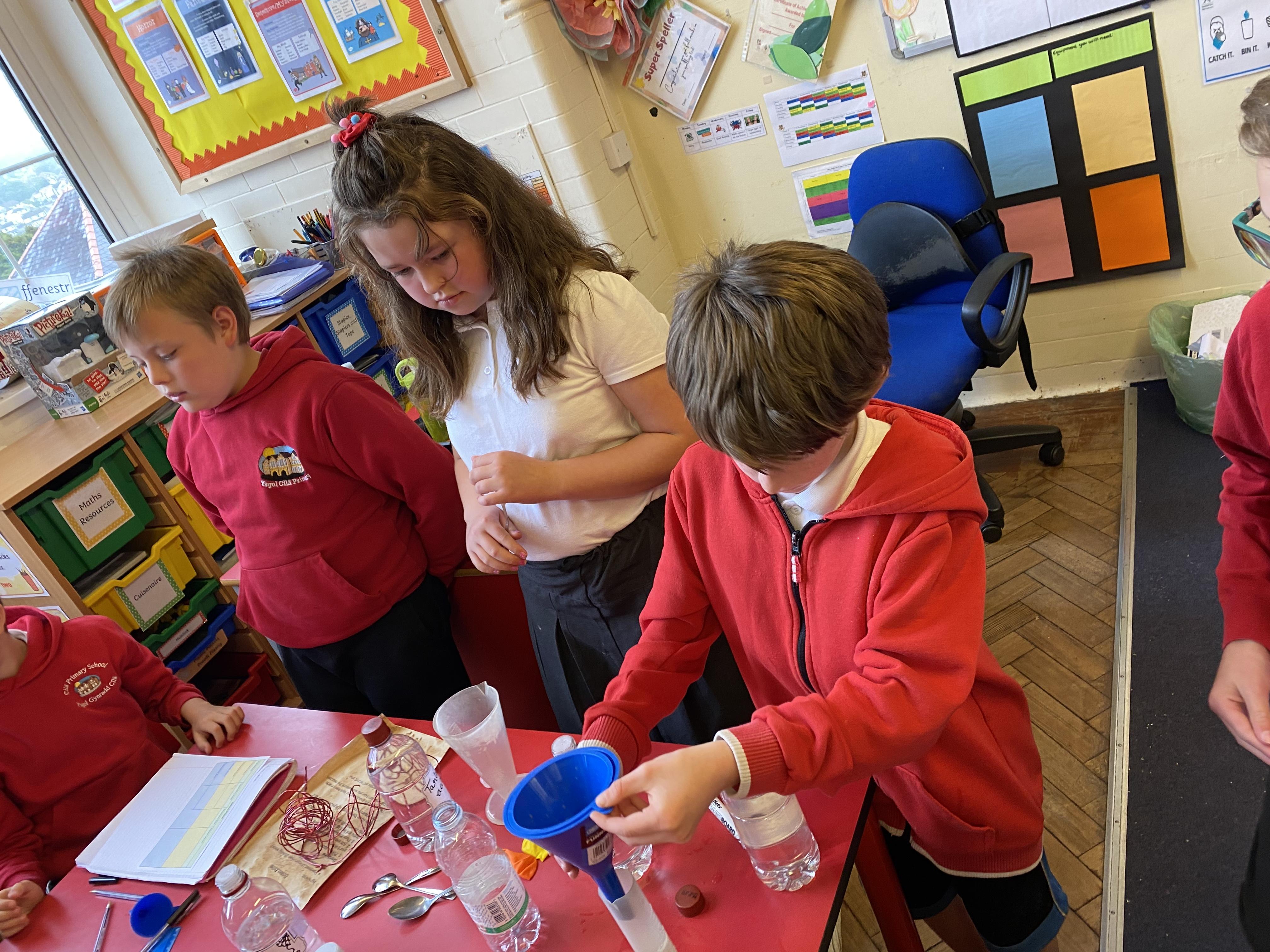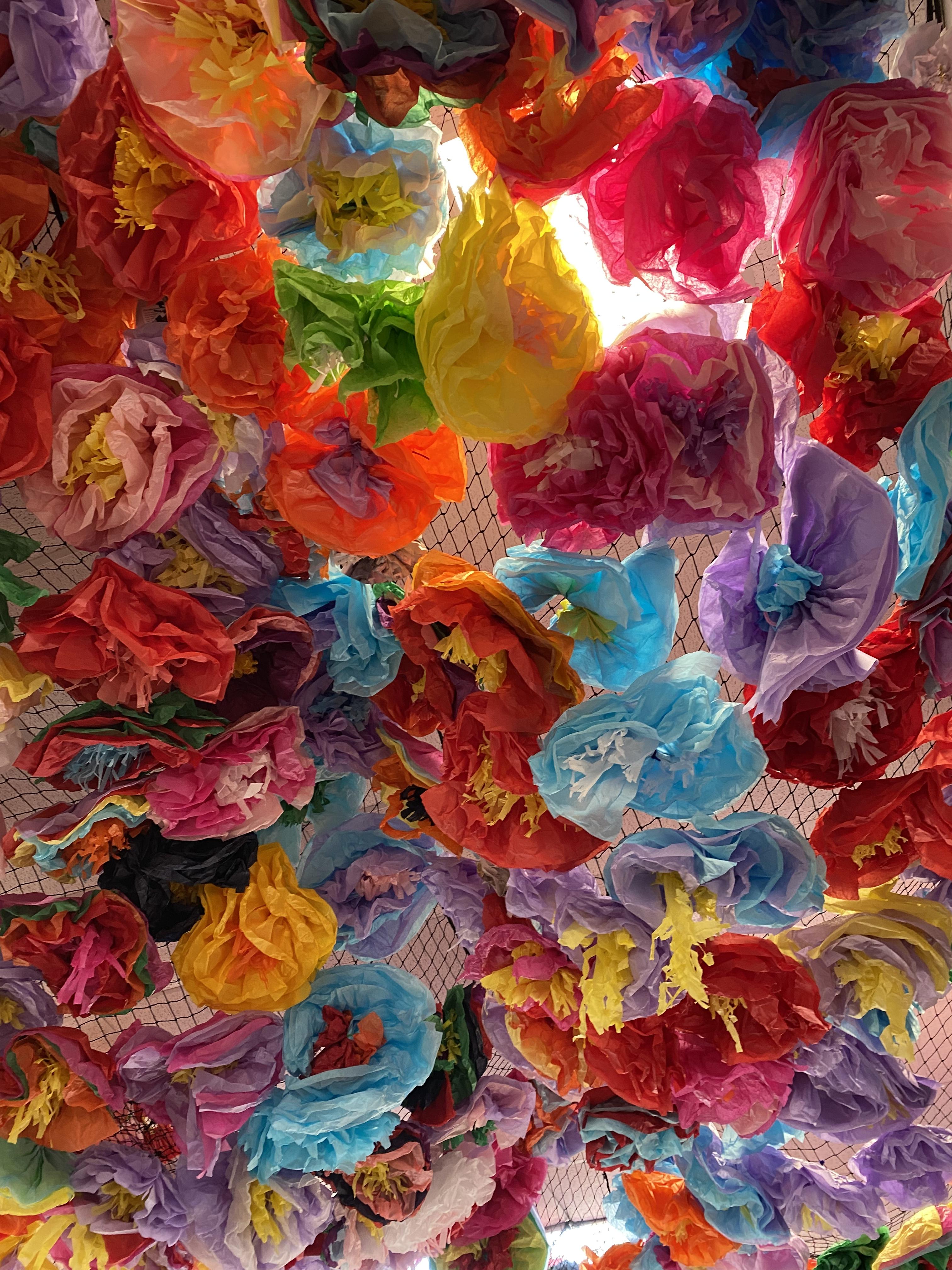 We made some hot-air balloons out of crepe paper, then used a hair dryer to heat up the air inside them