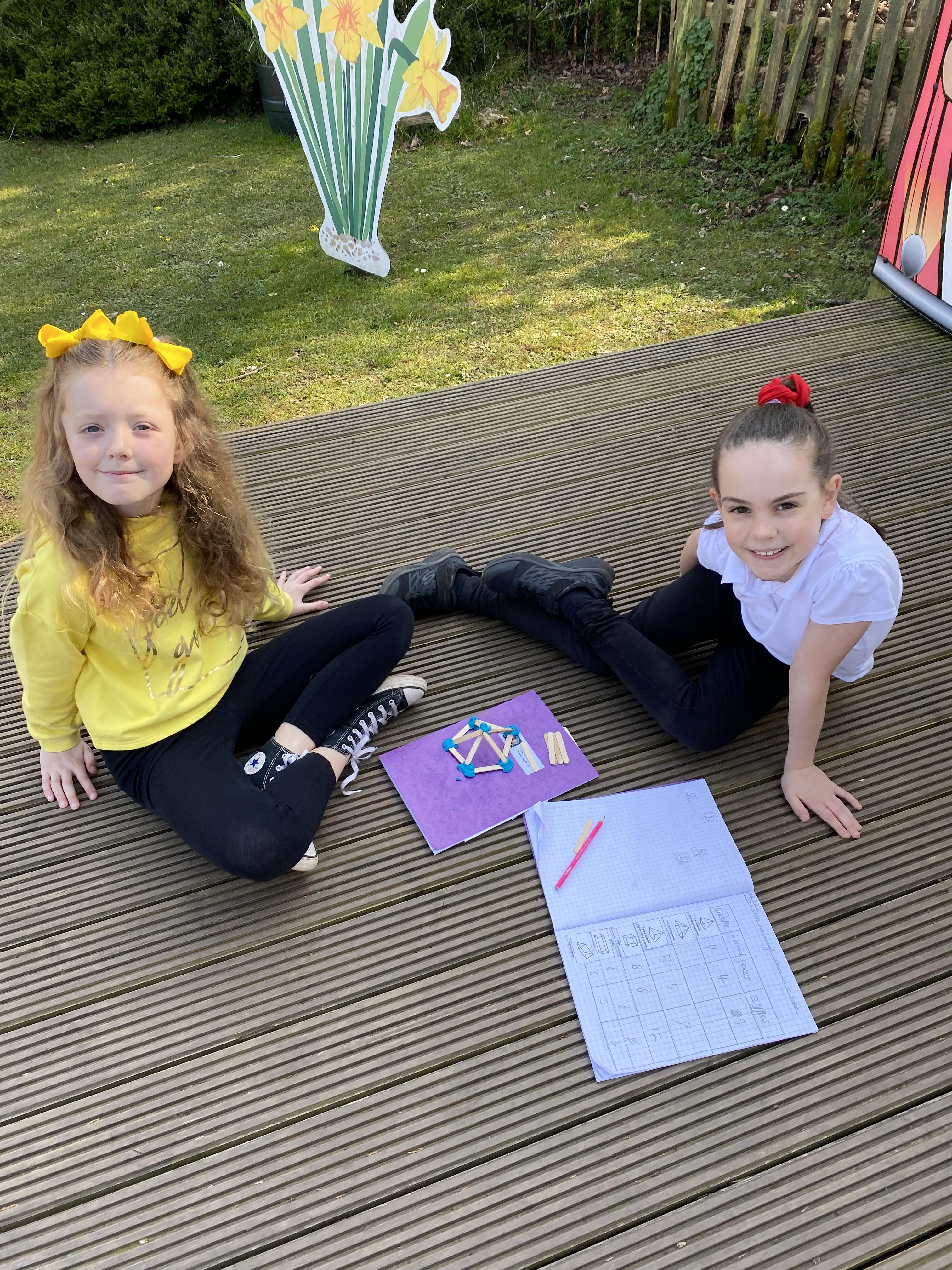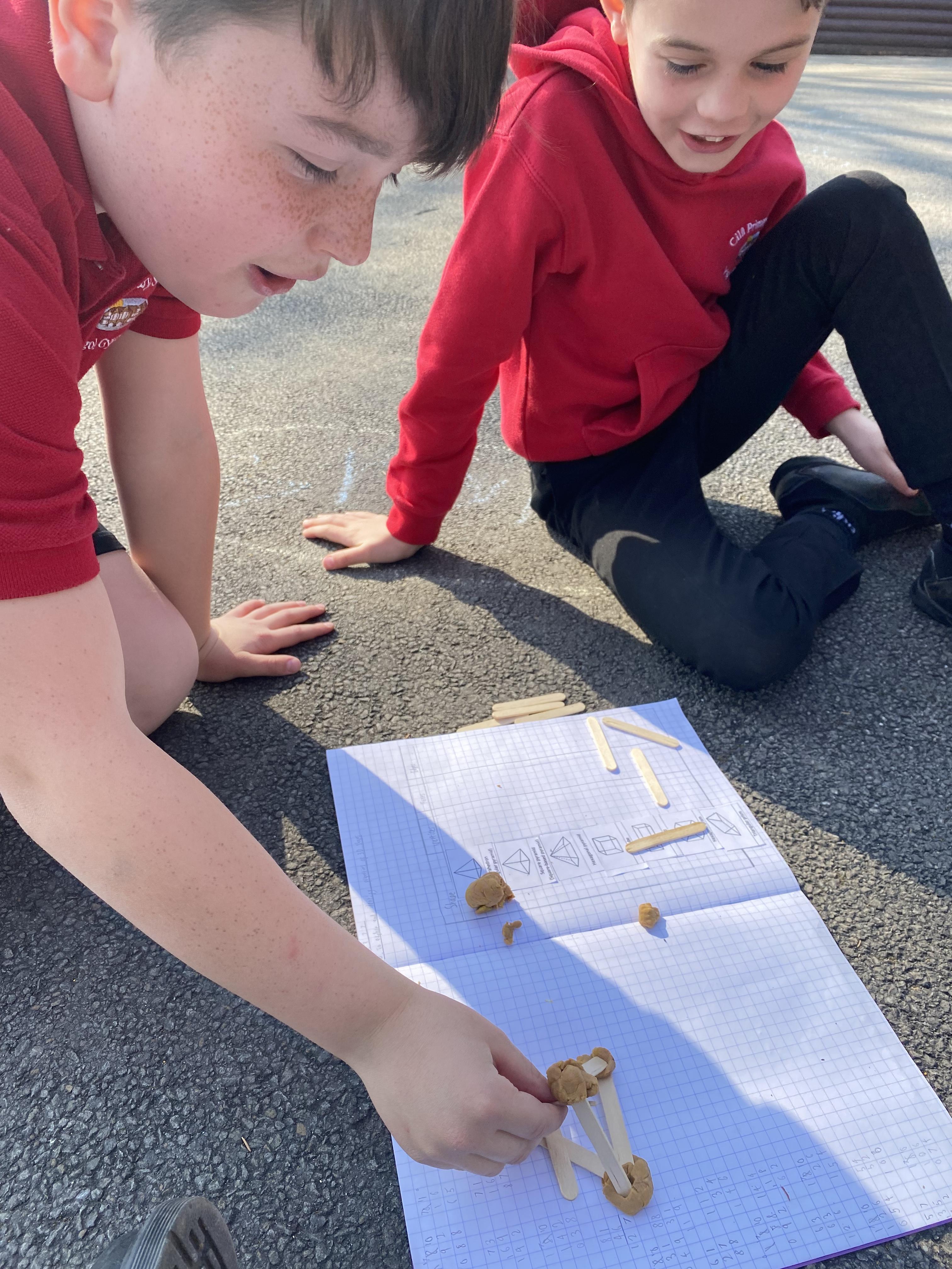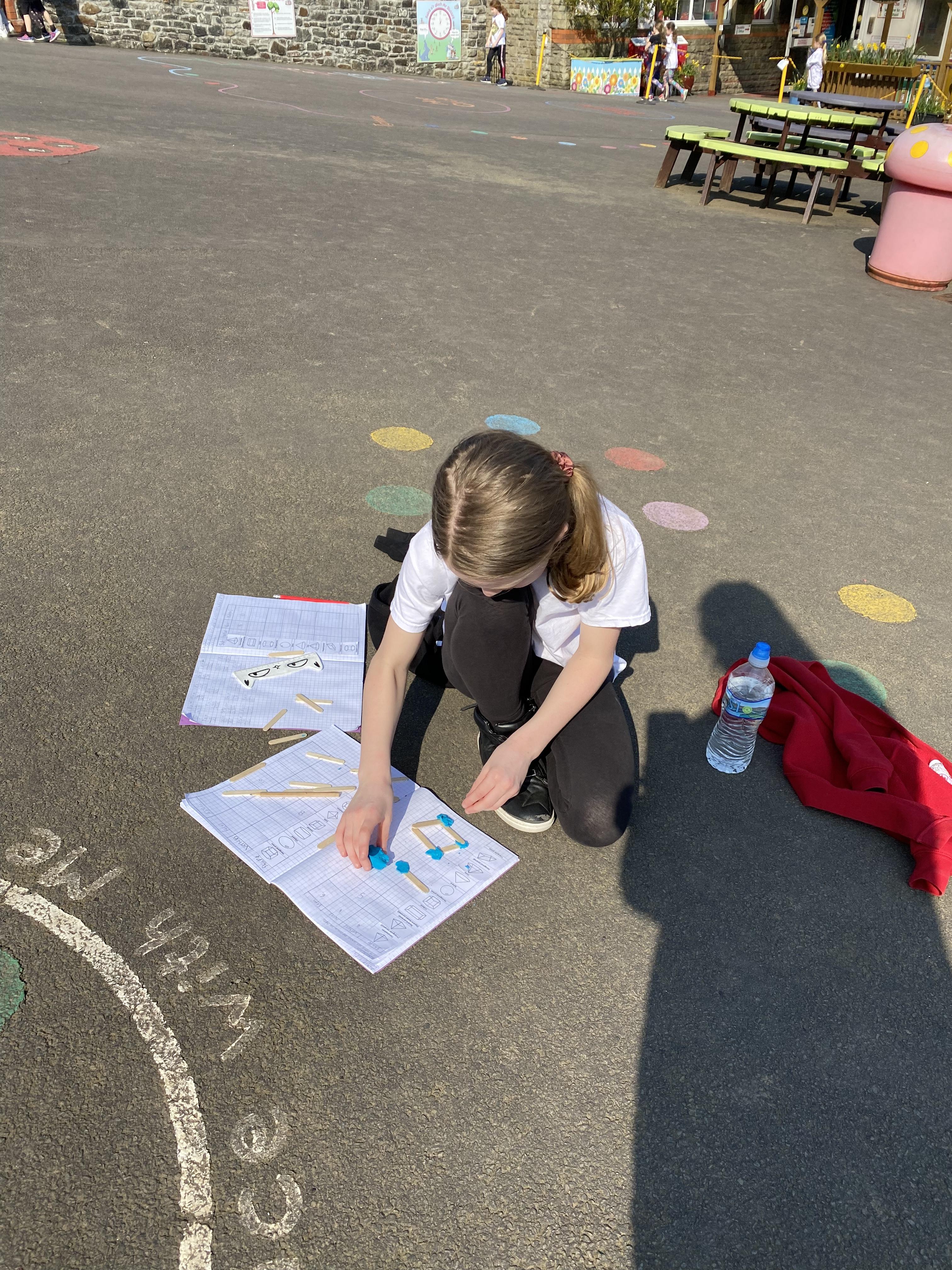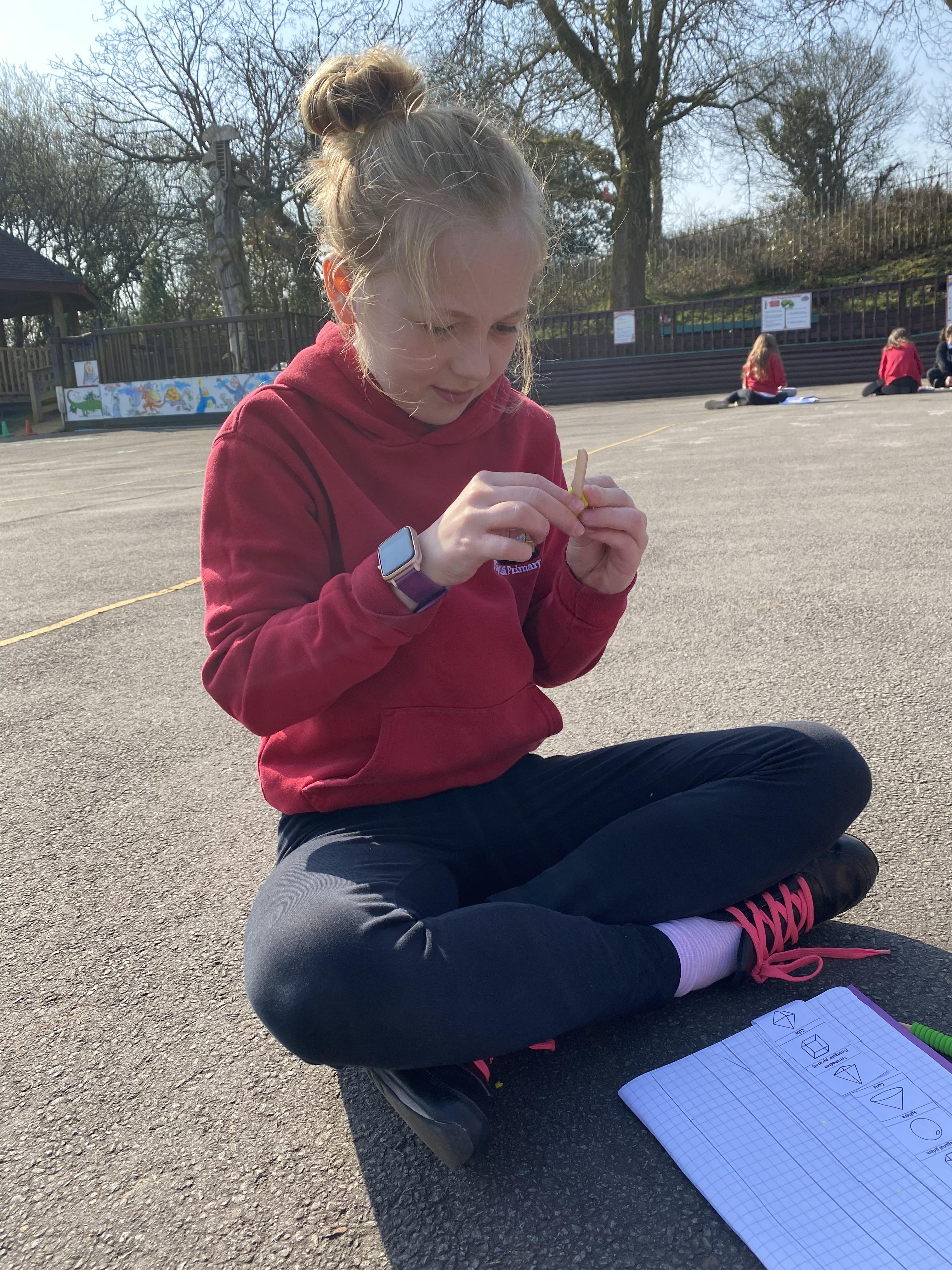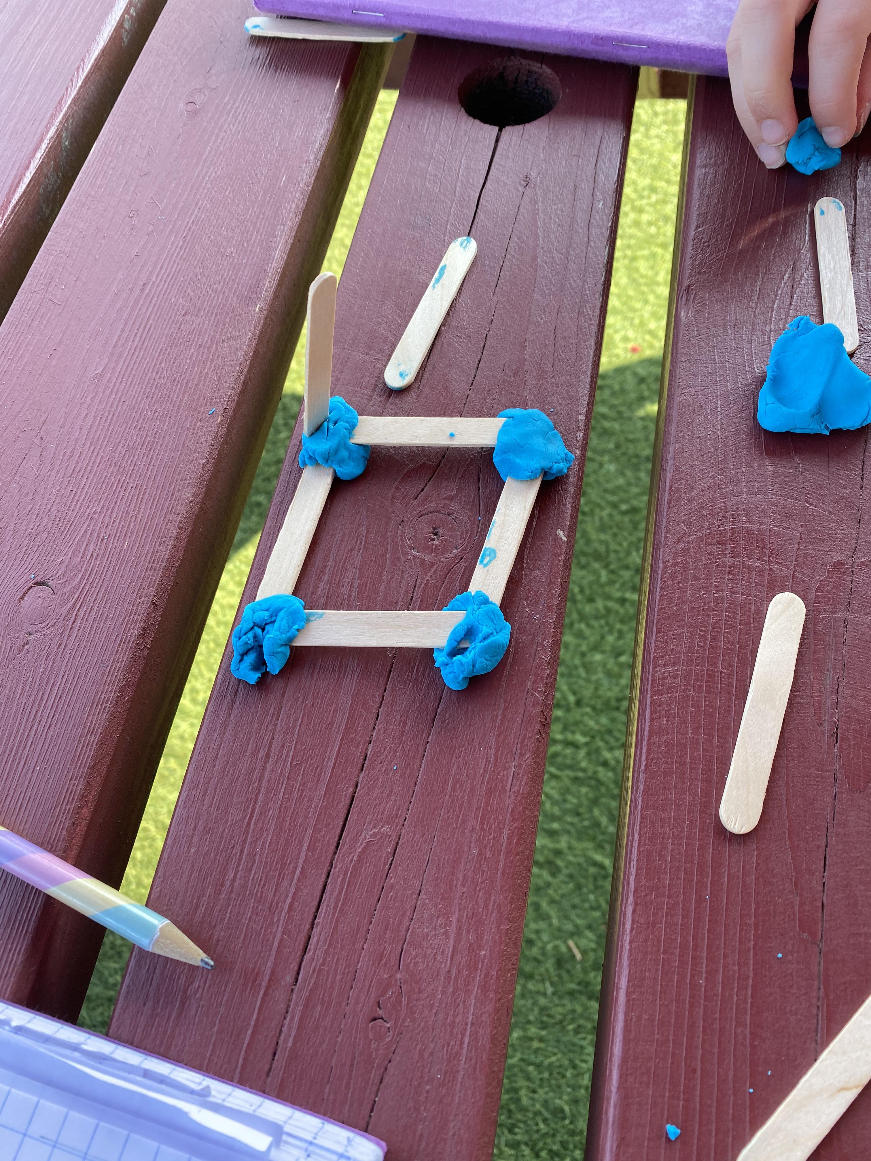 We took advantage of the beautiful weather by taking our maths outside today. We found out about the properties of 3D shapes by making some!