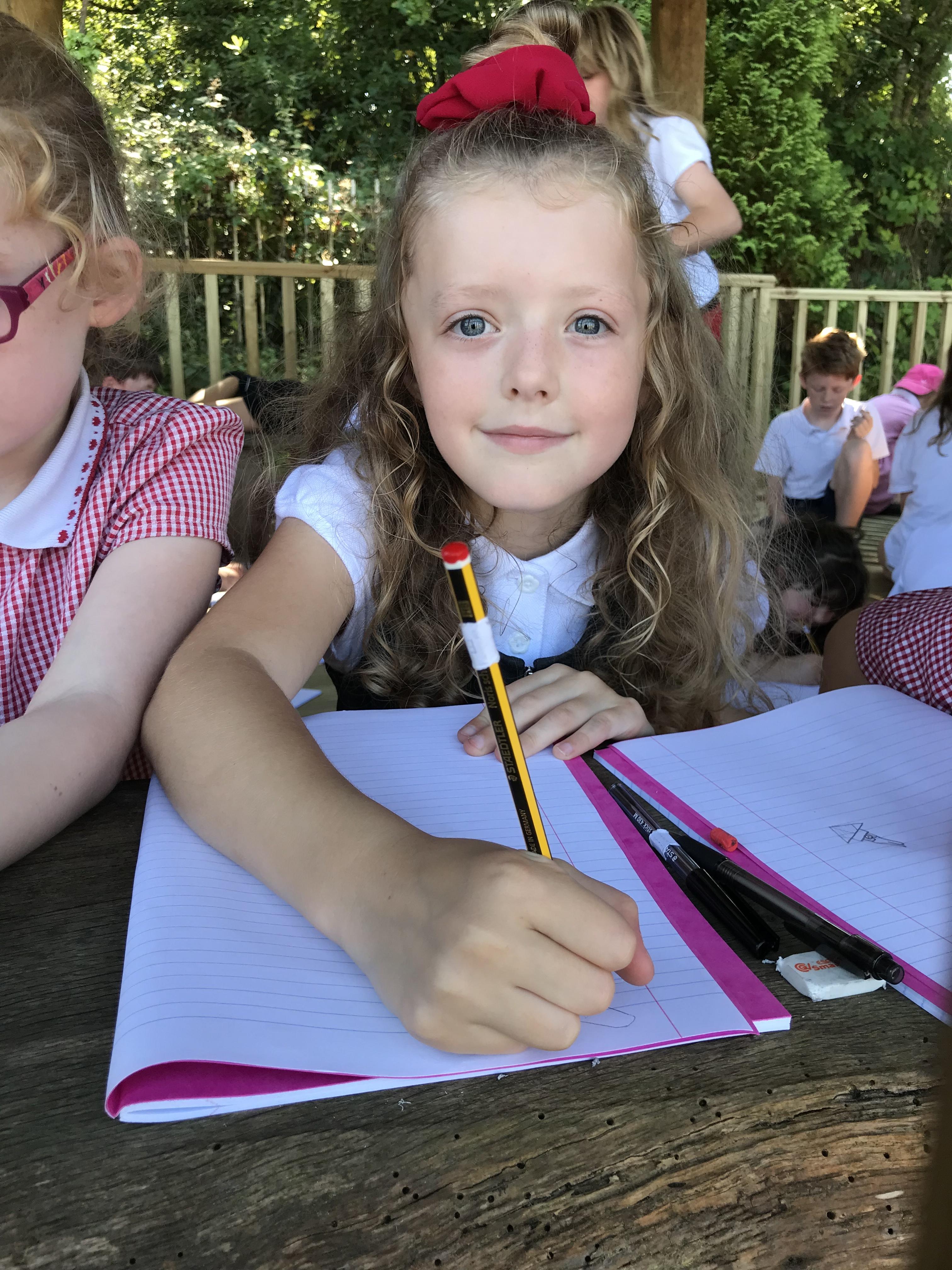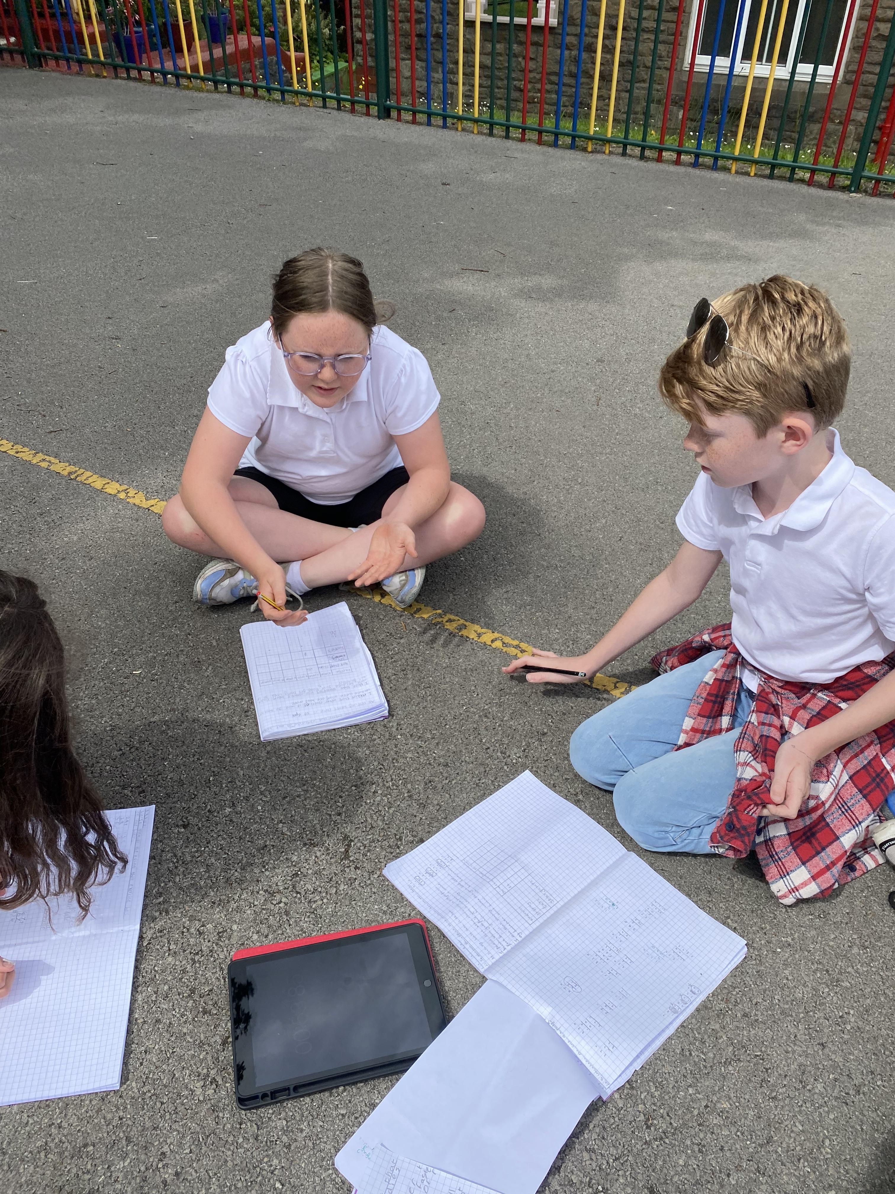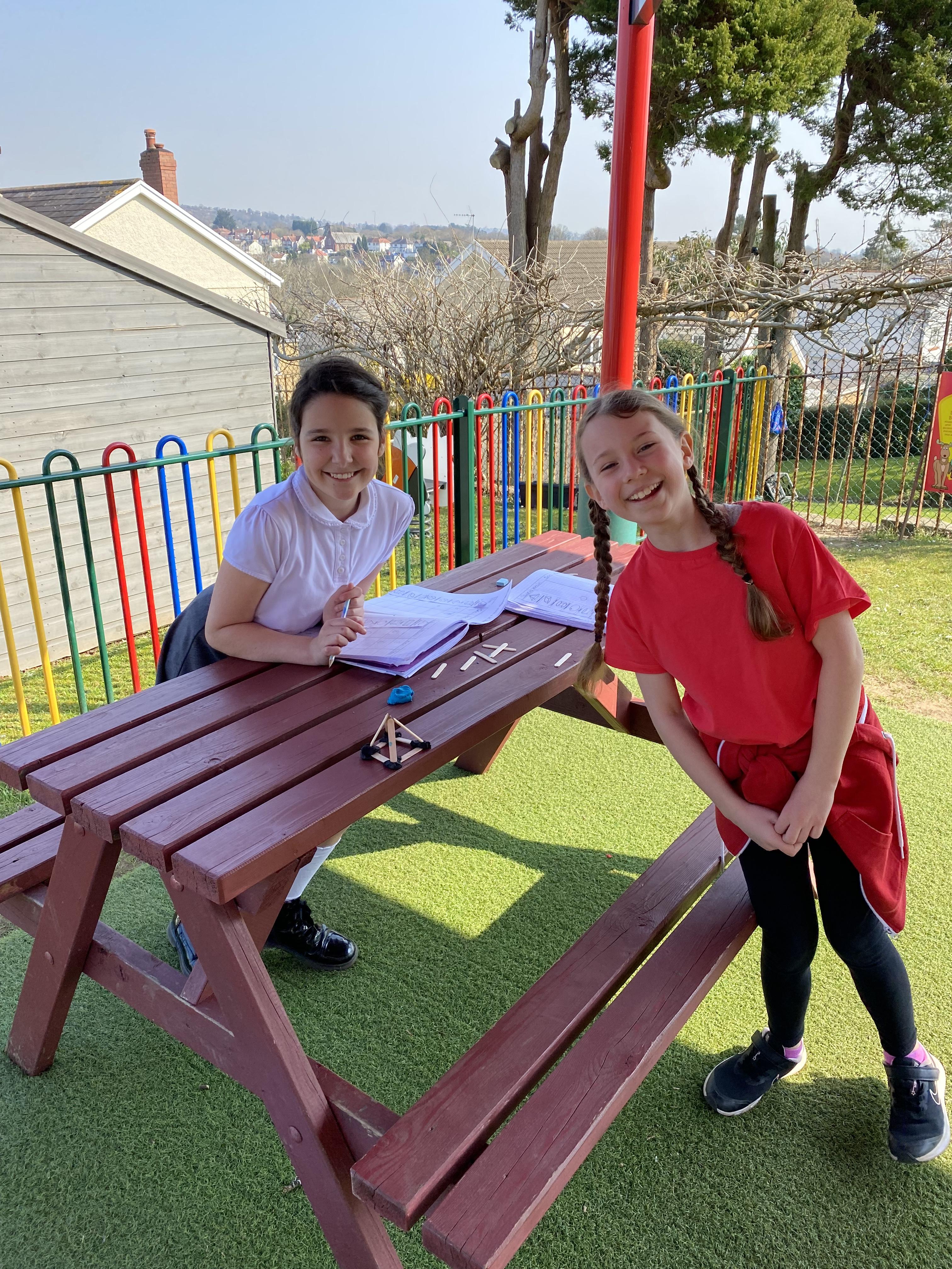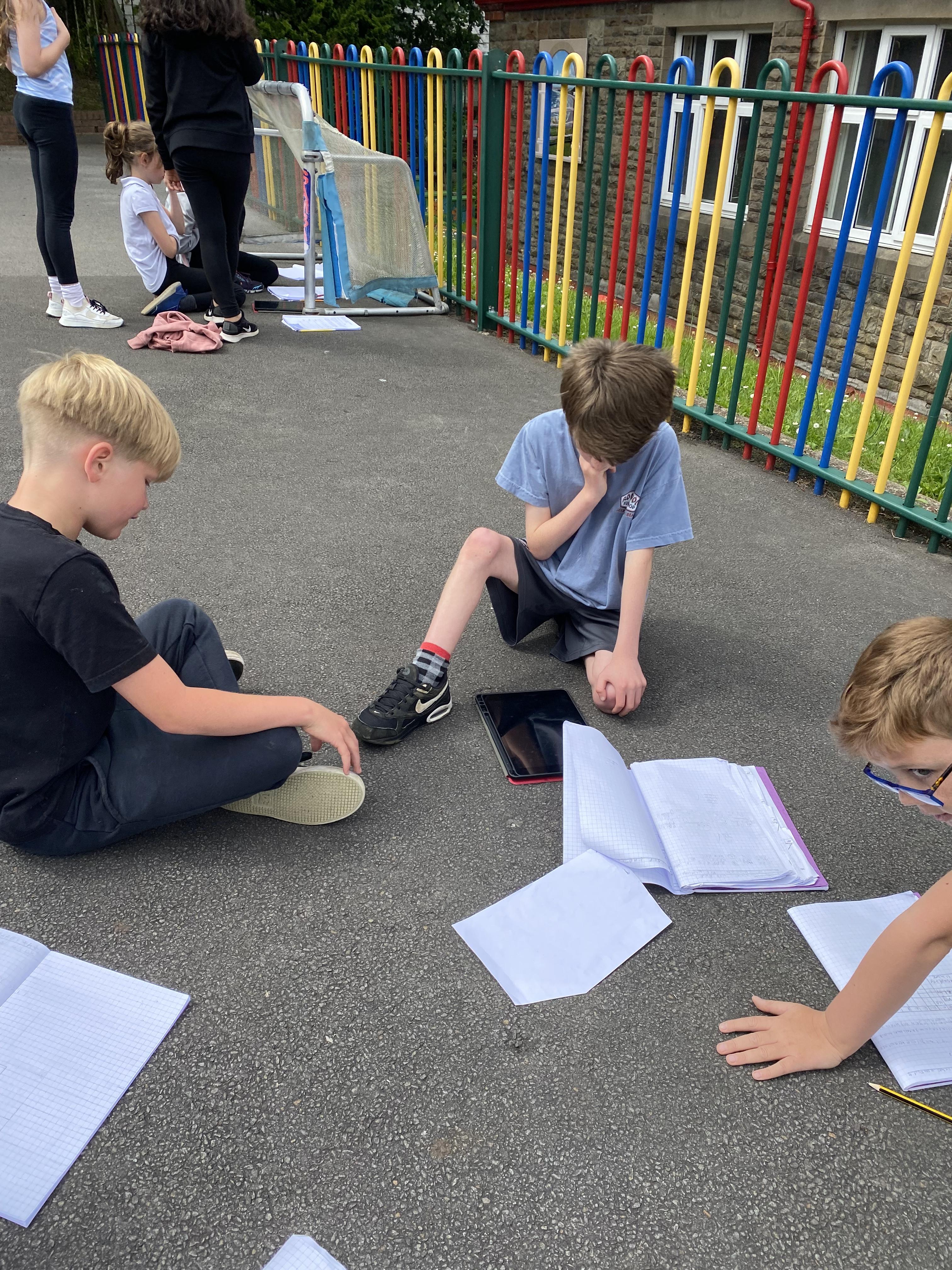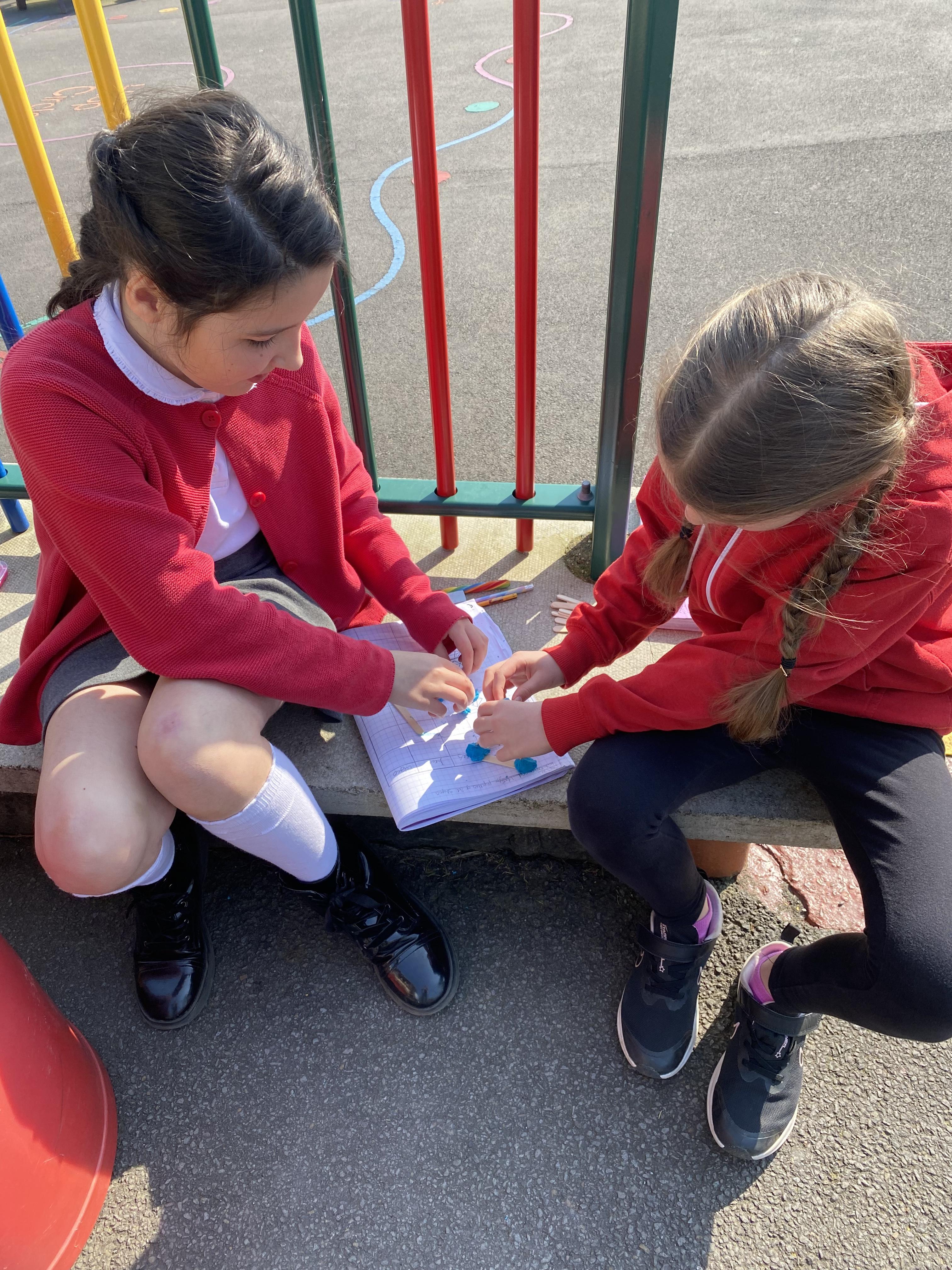 We took advantage of the beautiful weather by taking our maths outside today. We found out about the properties of 3D shapes by making some!