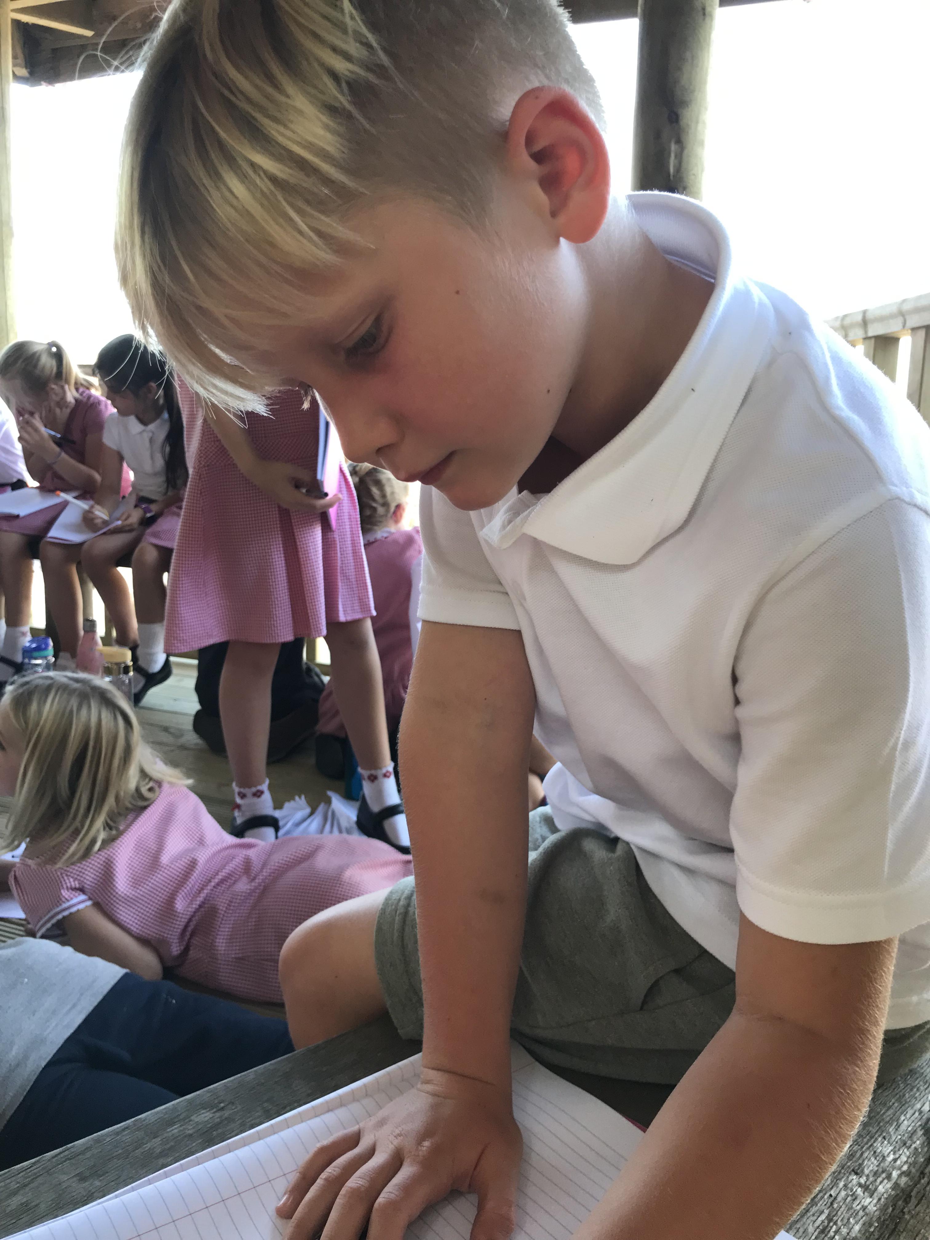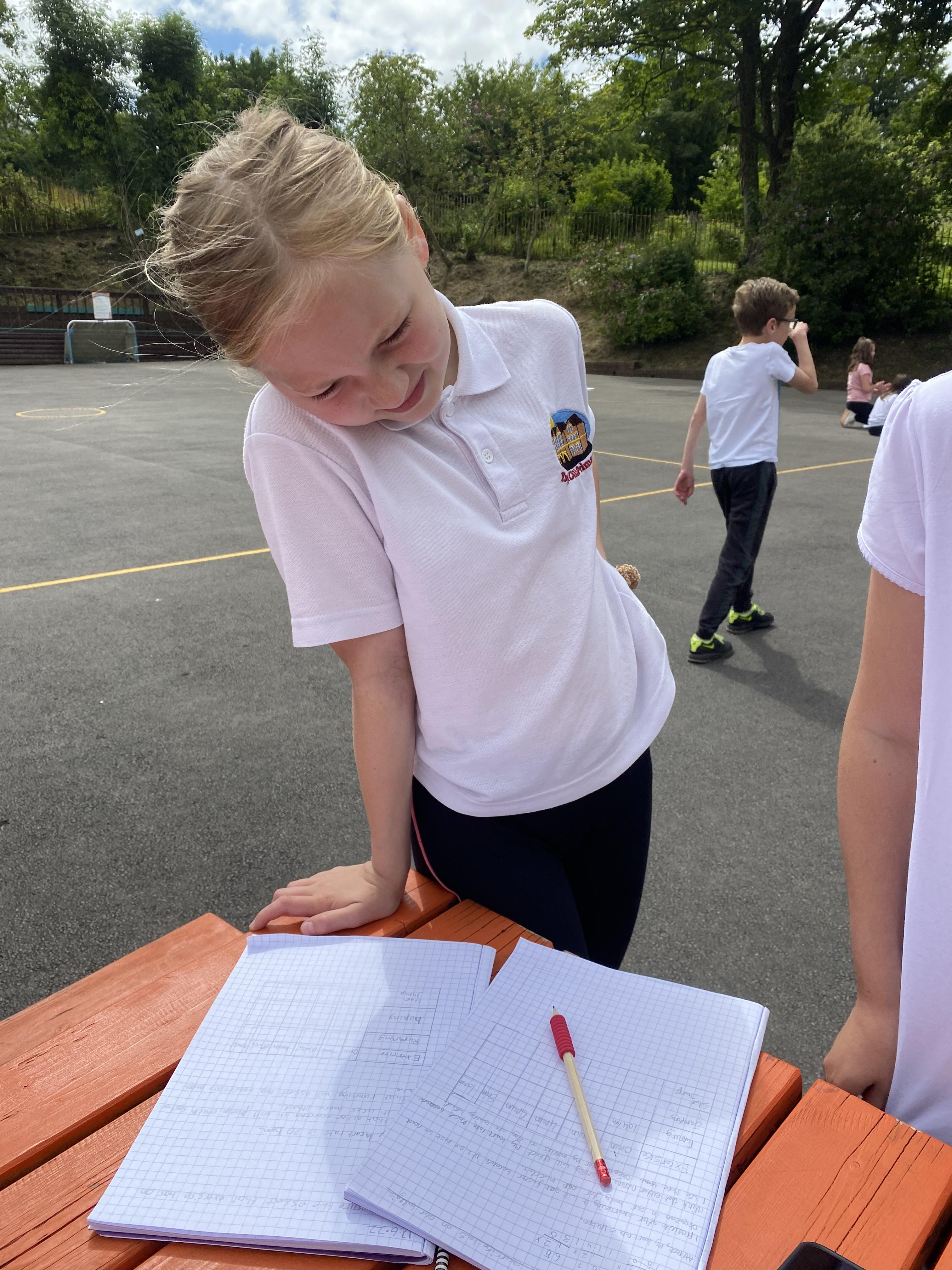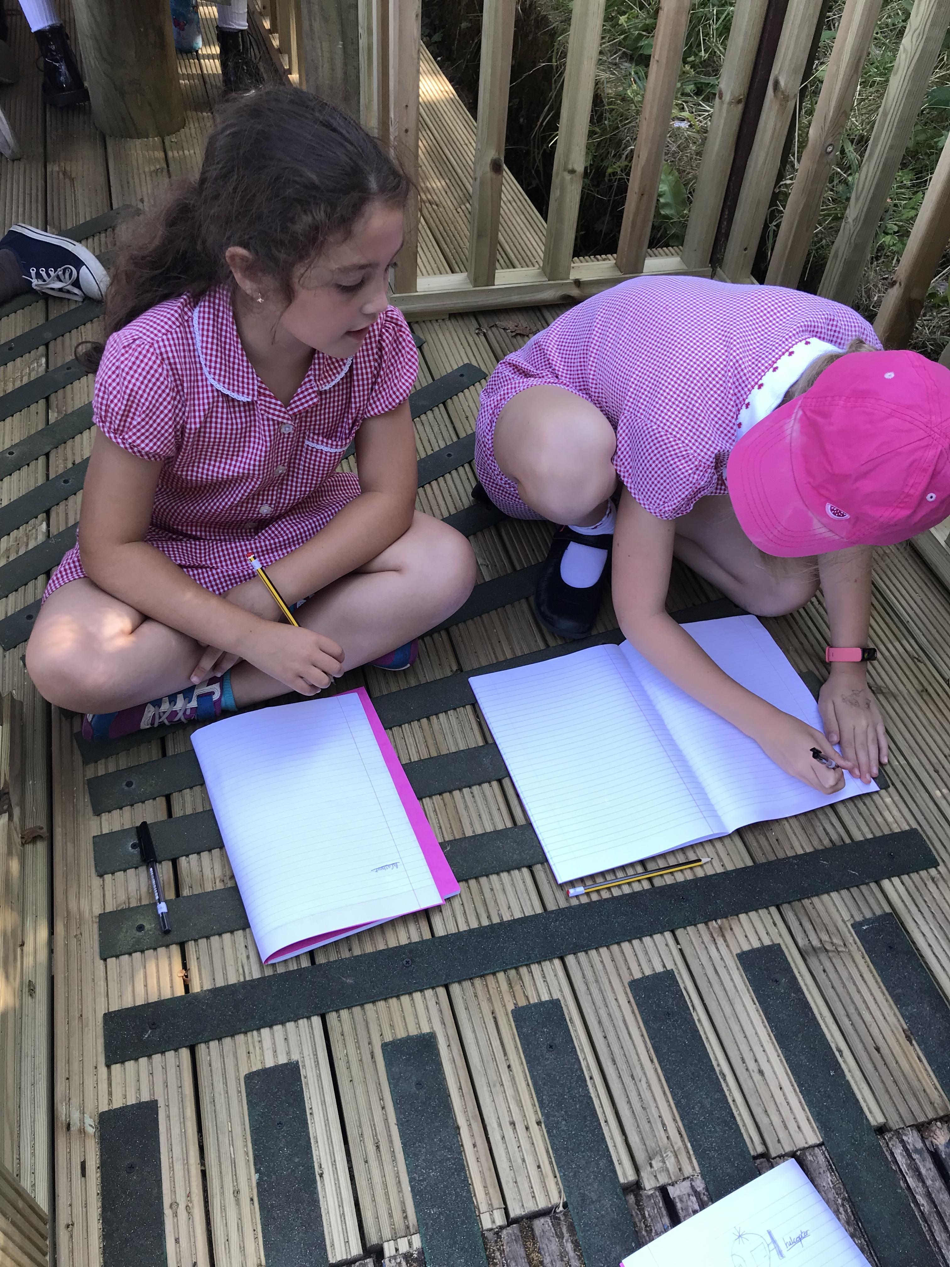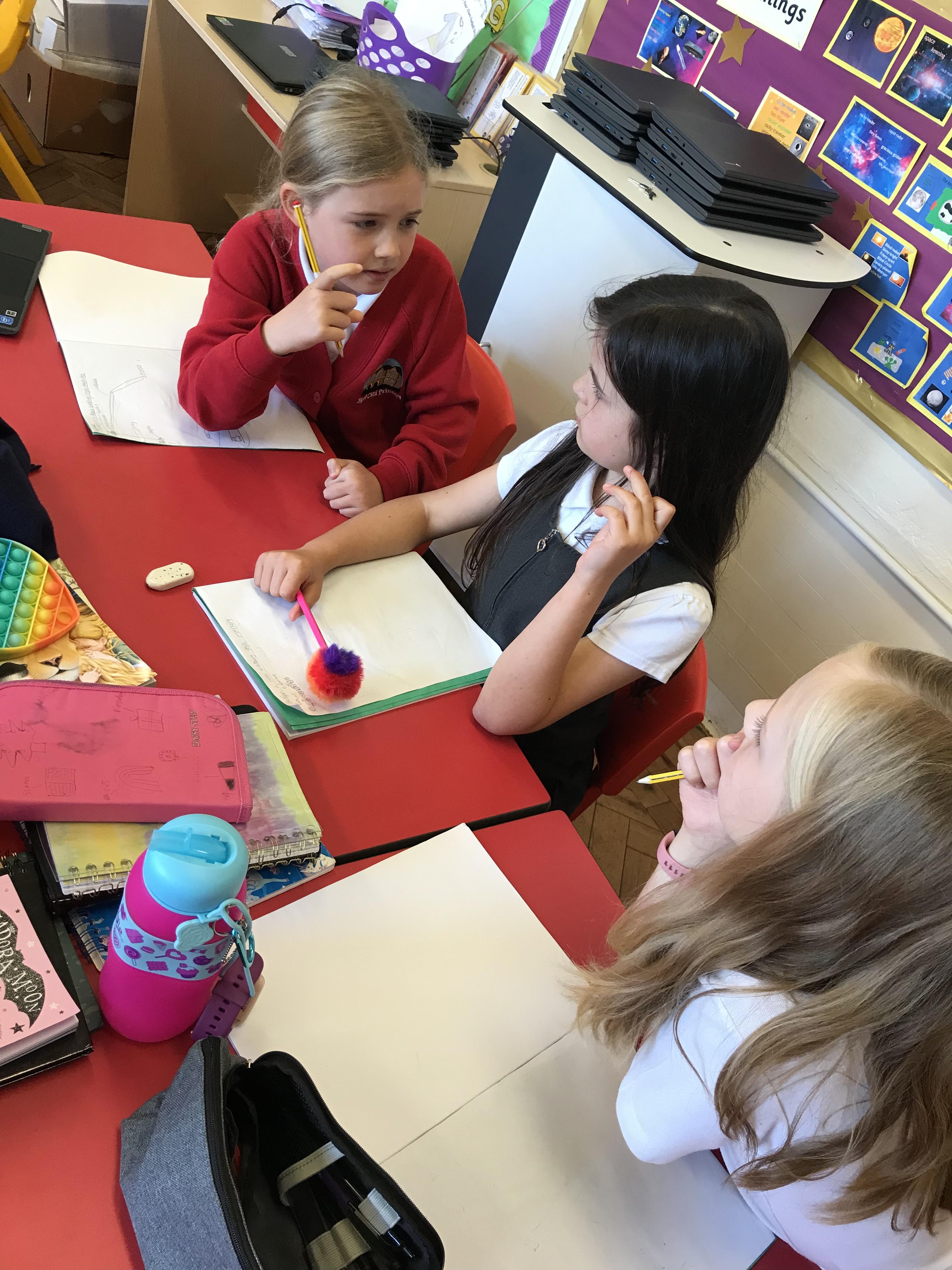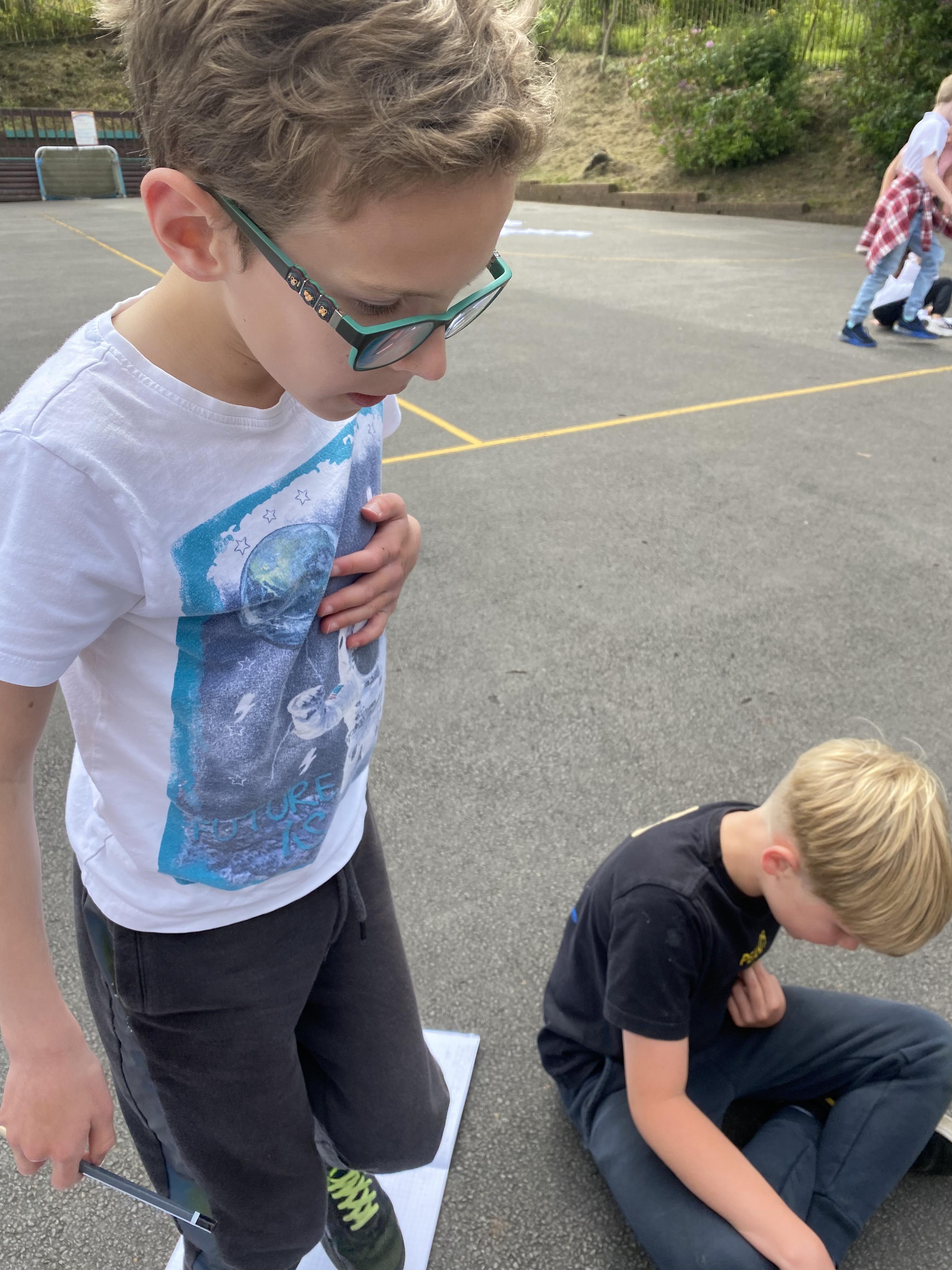 We took advantage of the beautiful weather by taking our maths outside today. We found out about the properties of 3D shapes by making some!