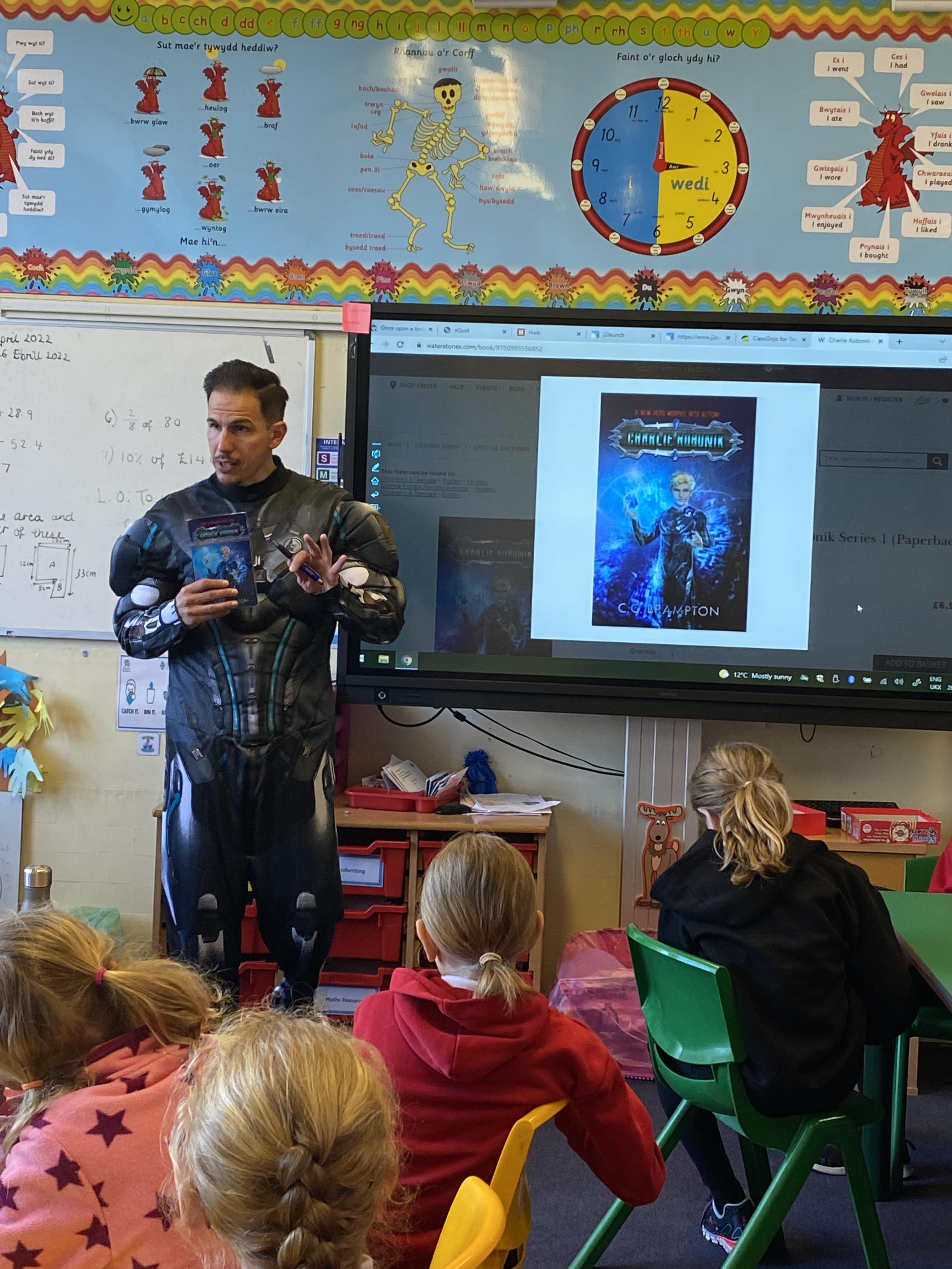 We were visited by the author, C.C Brampton this week. He read us the first chapter of his new book, Charlie Robonik, and gave us some useful tips on how to write our own stories.
