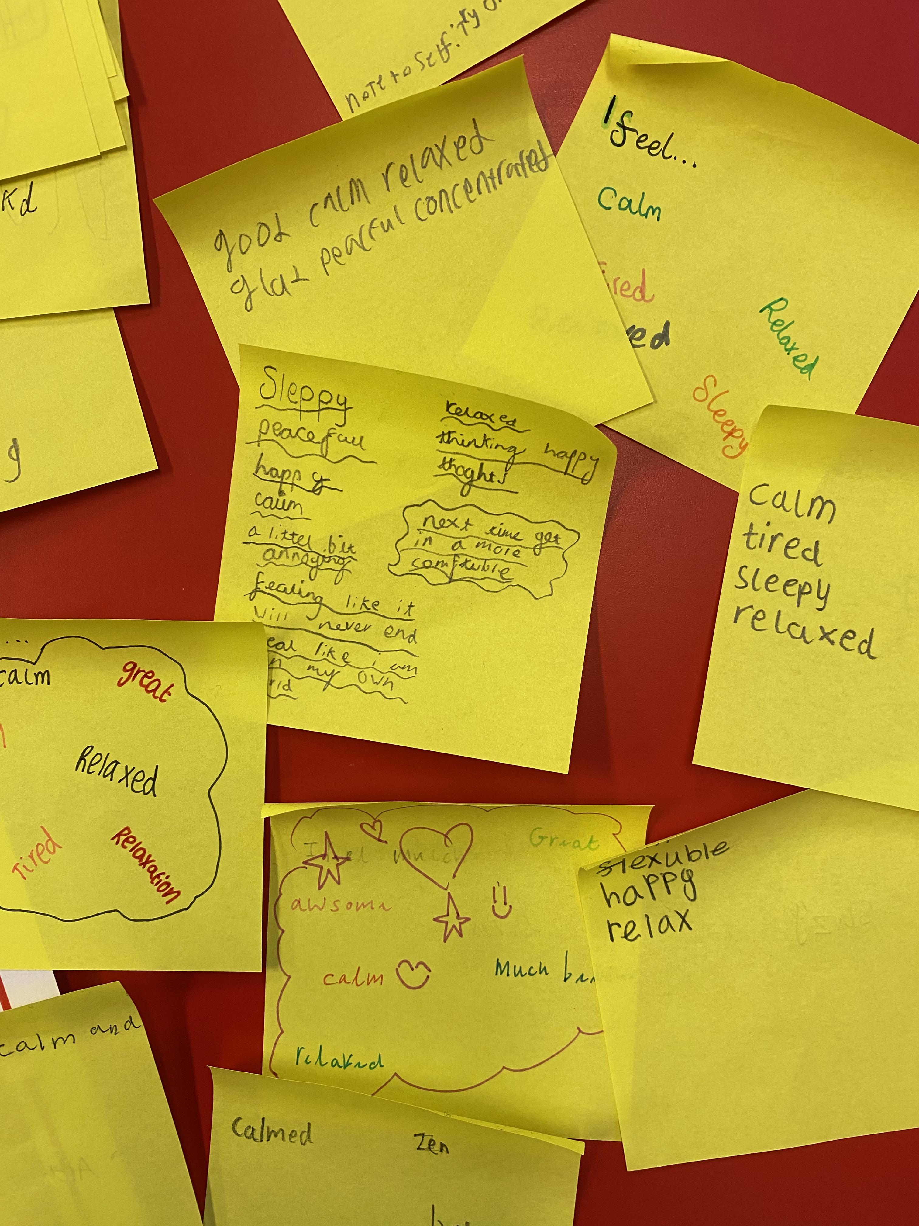 We have kicked off the week with a yoga session and some meditation. We focused on our breathing and clearing our minds, then we jotted down some of our feelings on Post-it notes after the session.