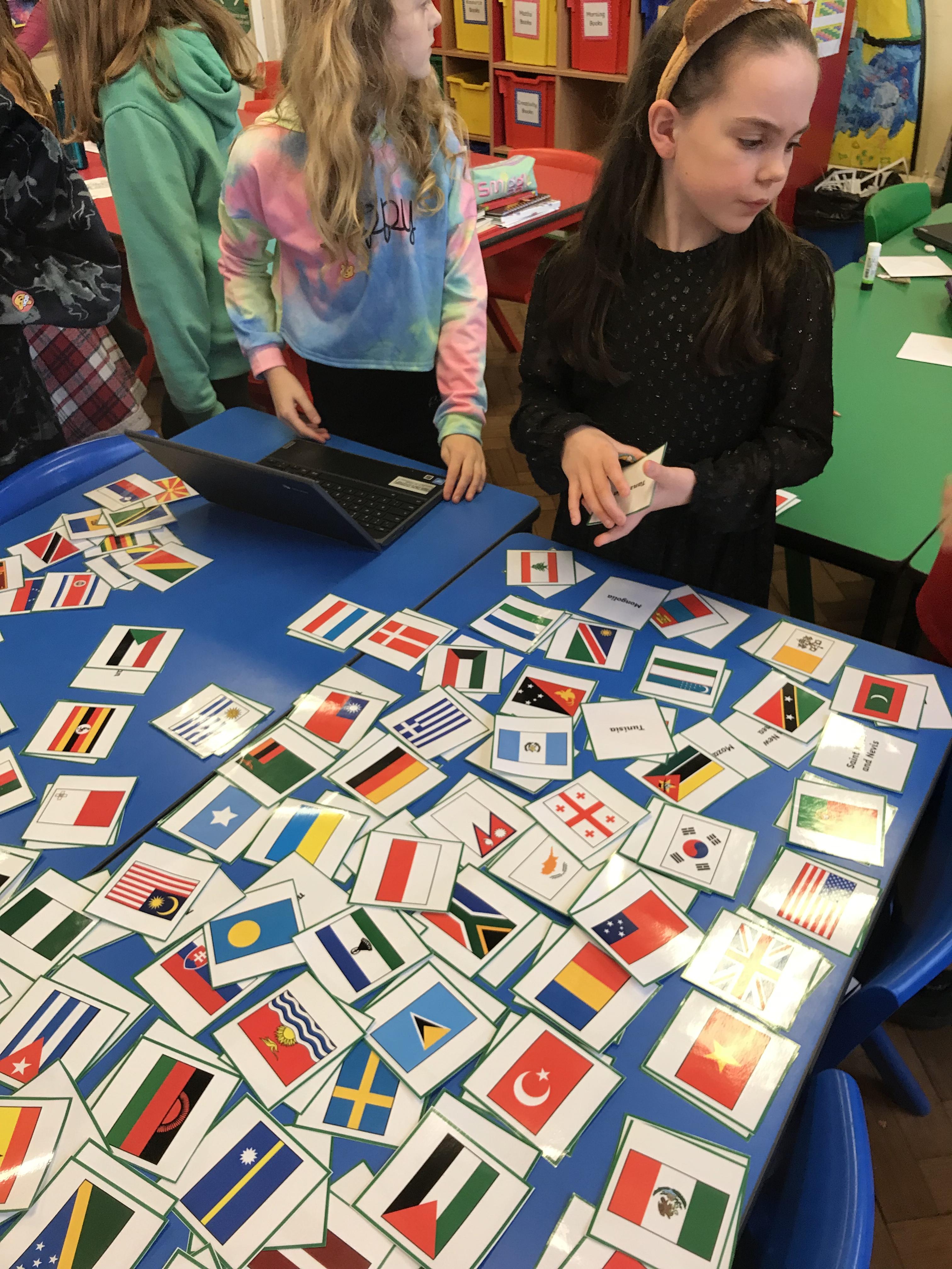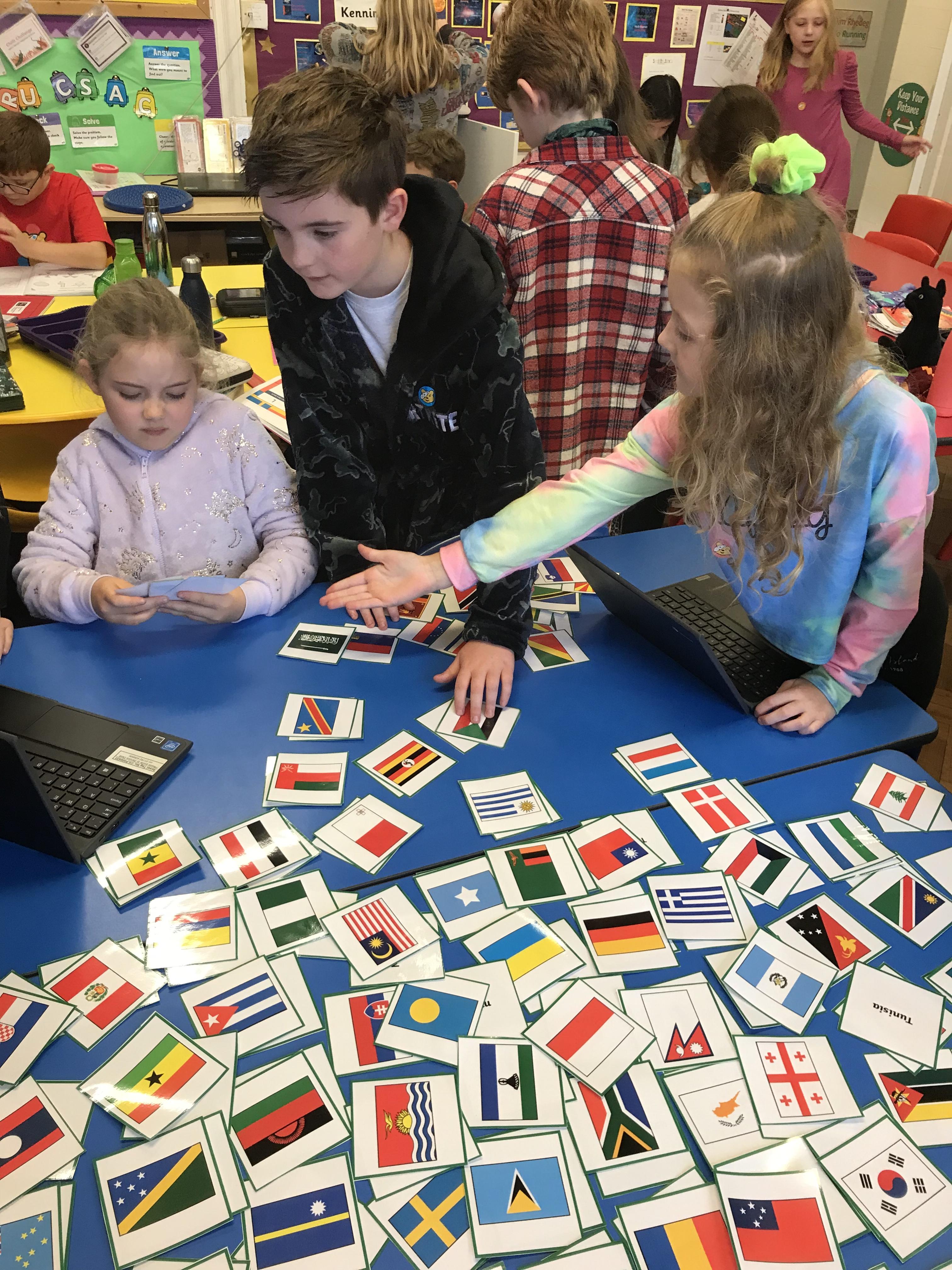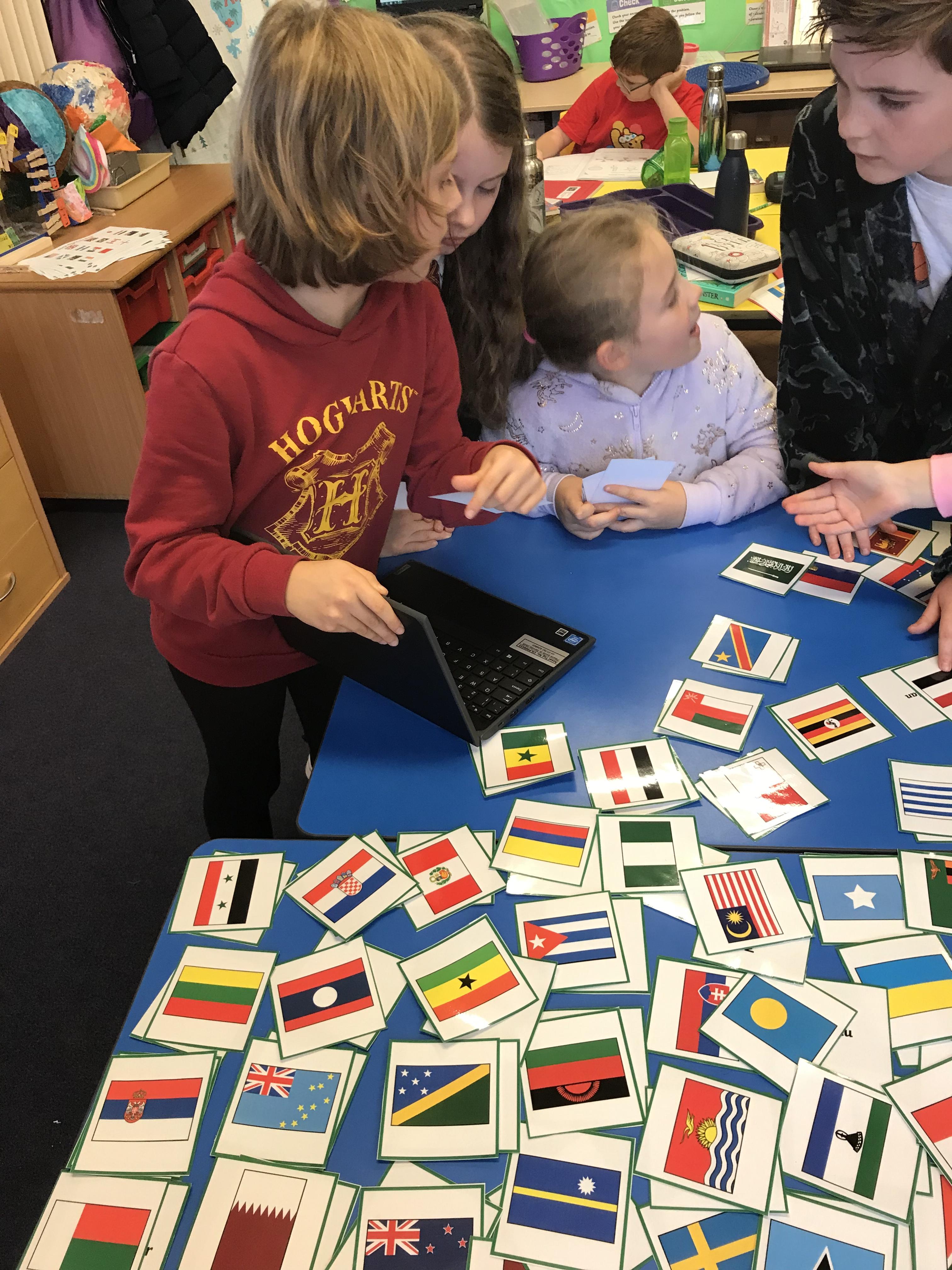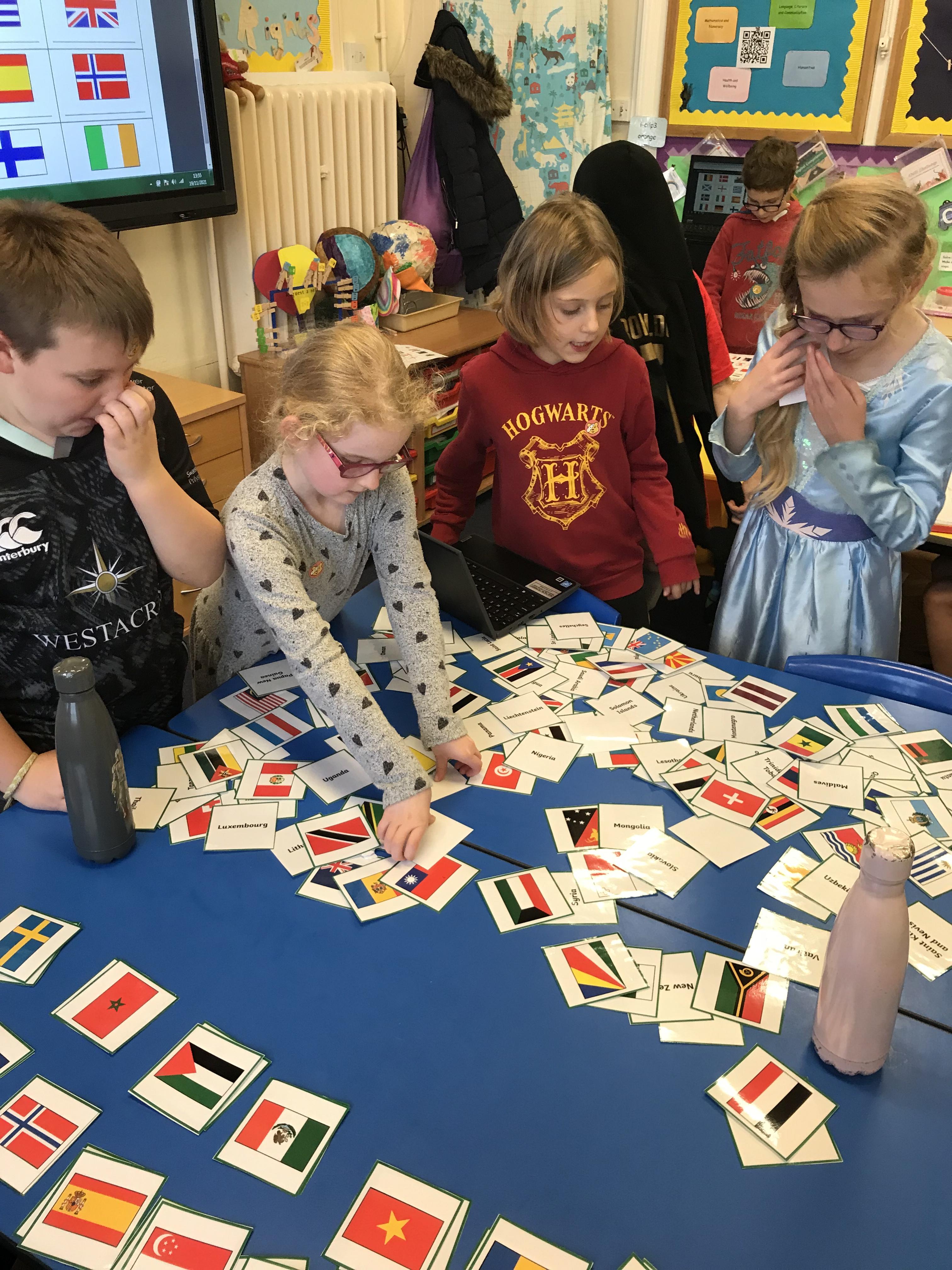 Pupils enjoyed matching flags to countries today