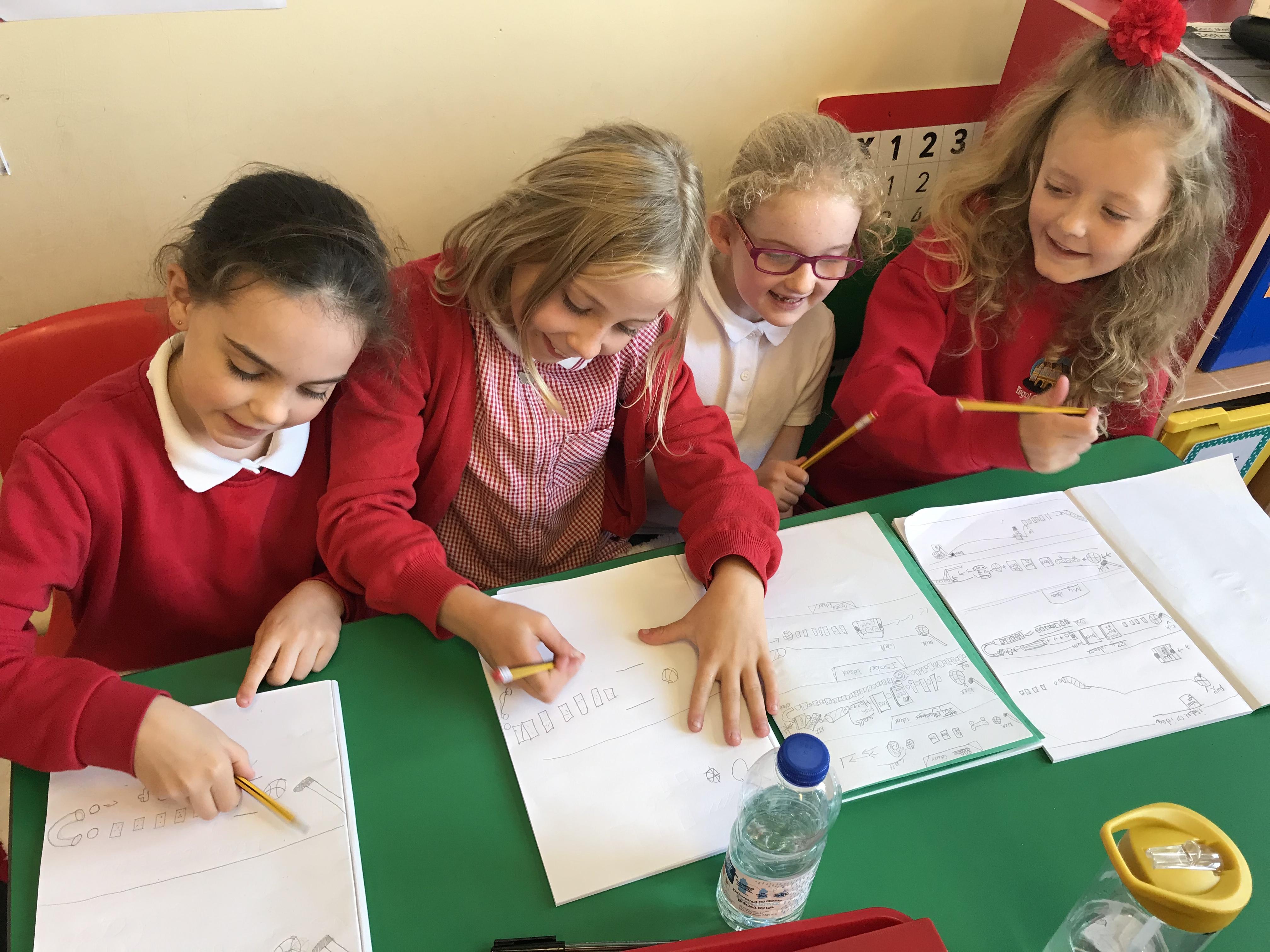 Technology week is so much fun! We have been working hard on designs for a giant chain-reaction machine, inspired by Rube Goldberg
