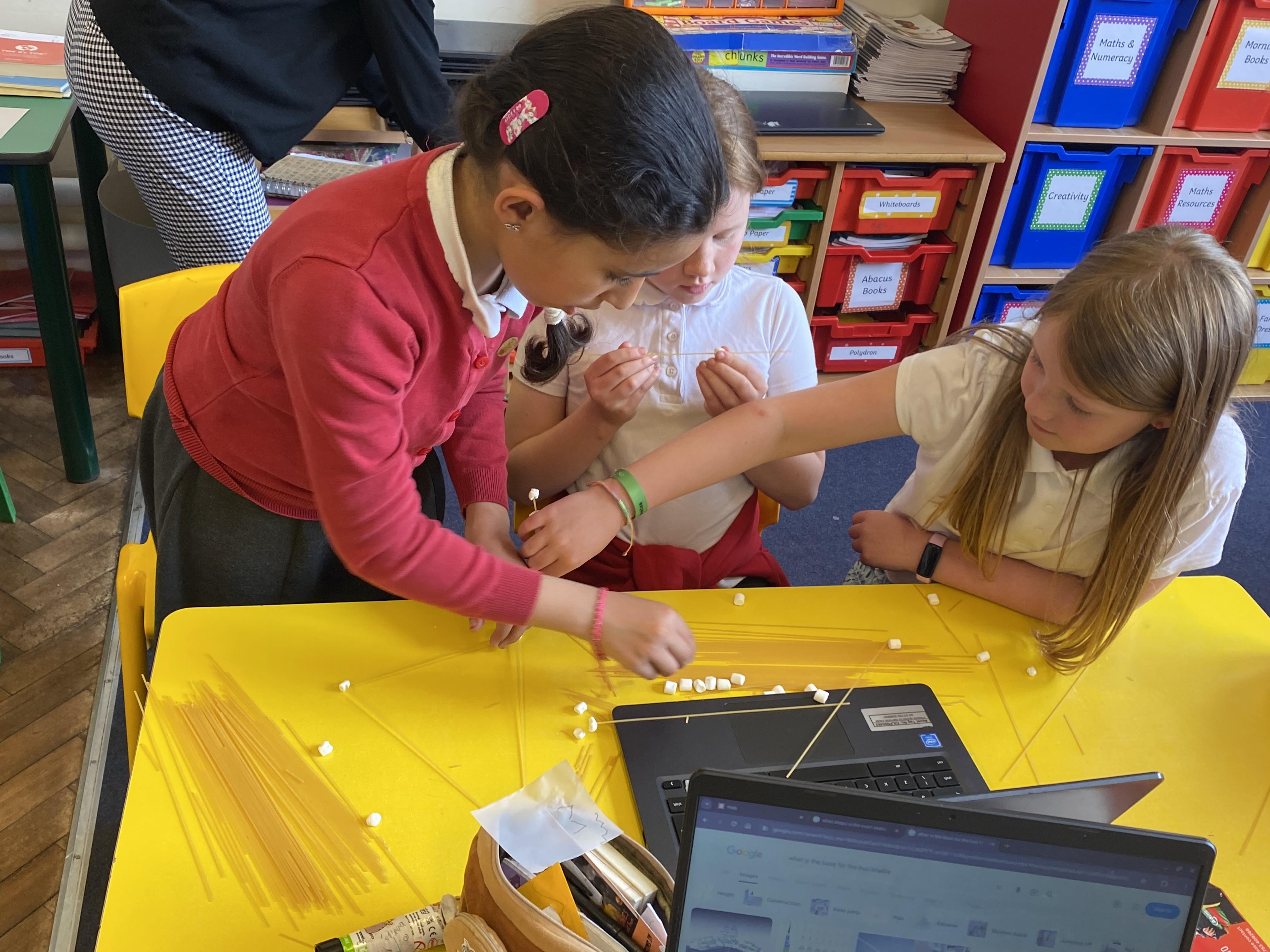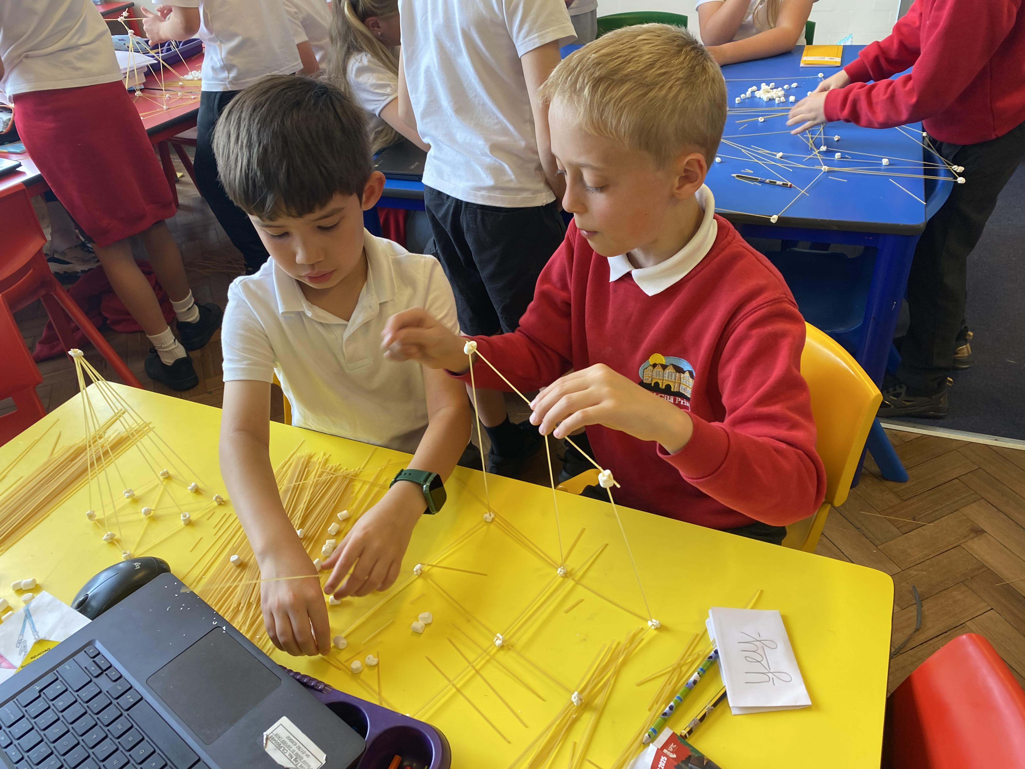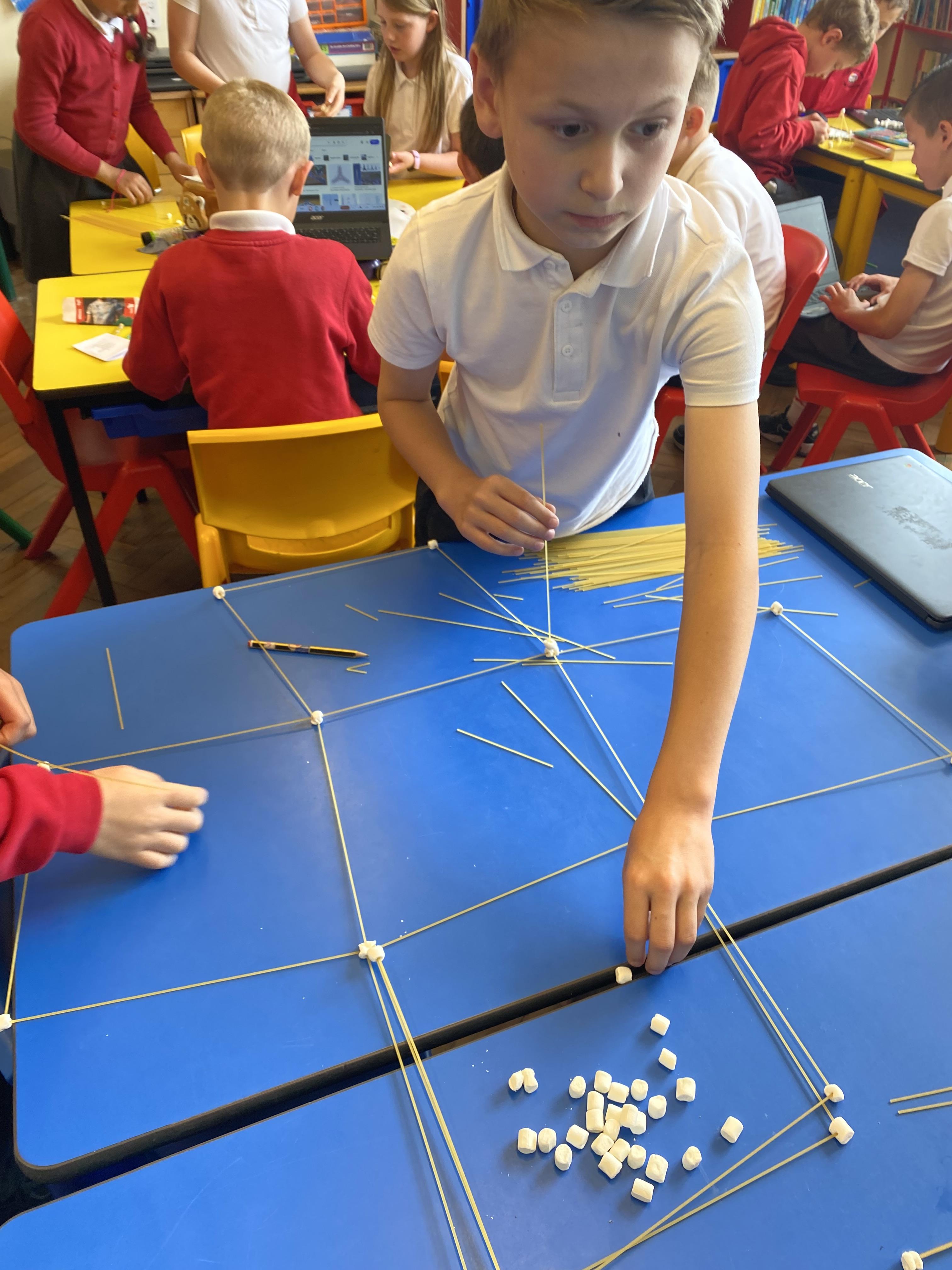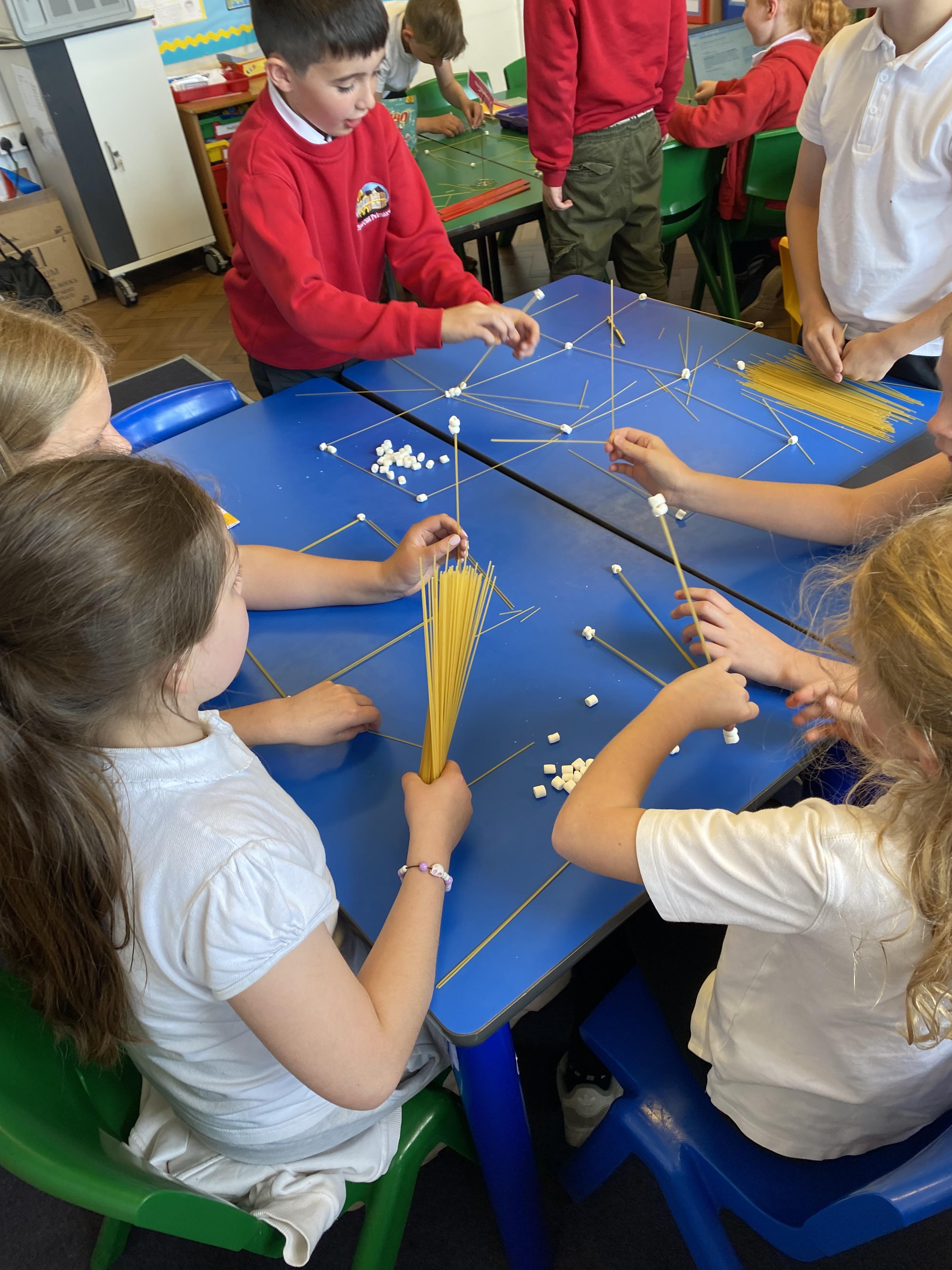 We have been building earthquake-resistant structures with marshmallows and spaghetti!