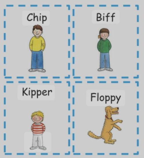 Try and encourage your child to learn the names by matching them to pictures with support. When they are more confident, let them try independently before moving onto the next step, which is identifying the names without the pictures. This will hopefully support sight vocabulary of key character names, and in
