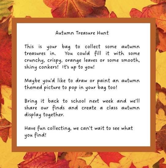 Your child has brought a paper bag home this week to collect some Autumn treasures.