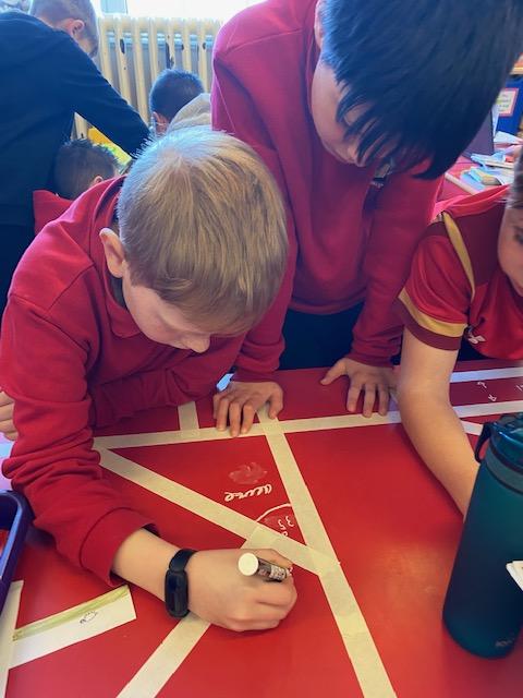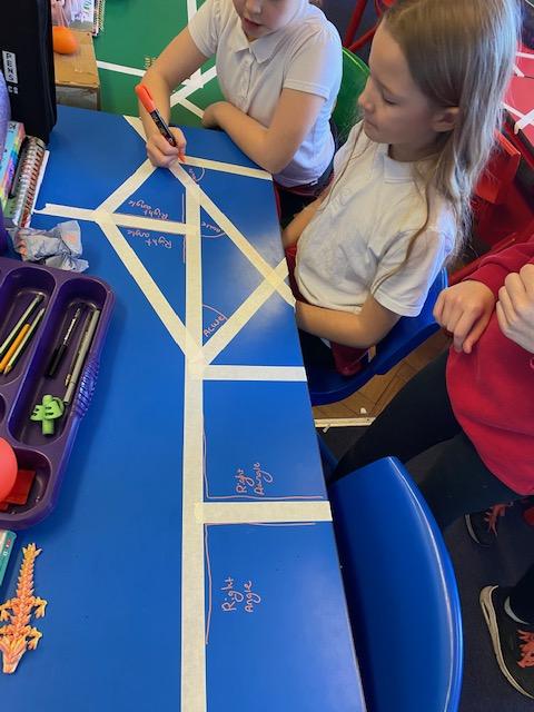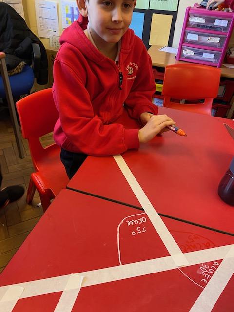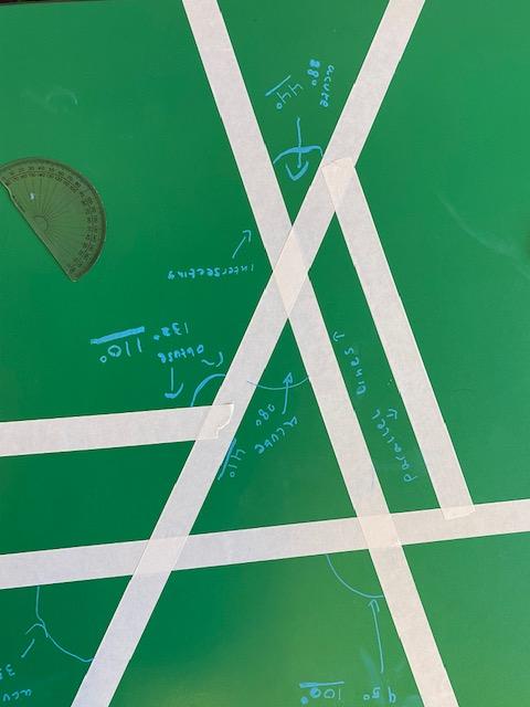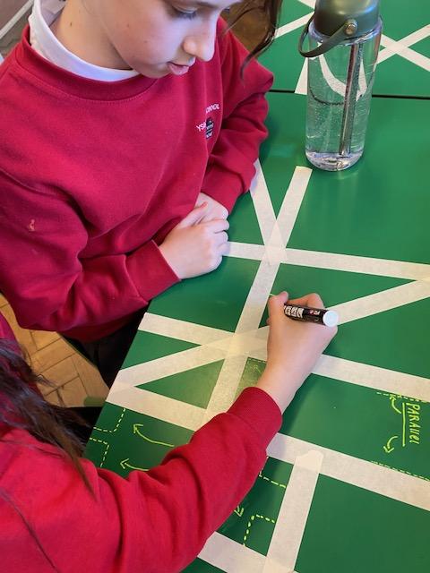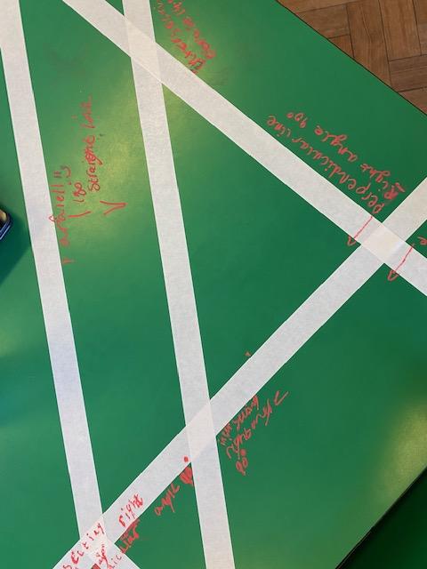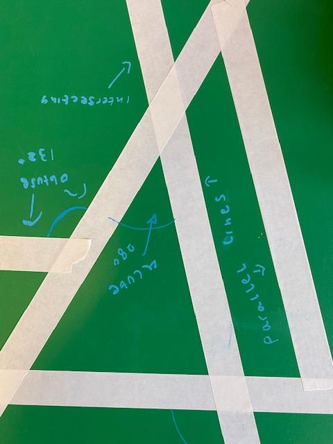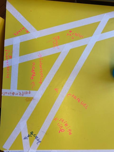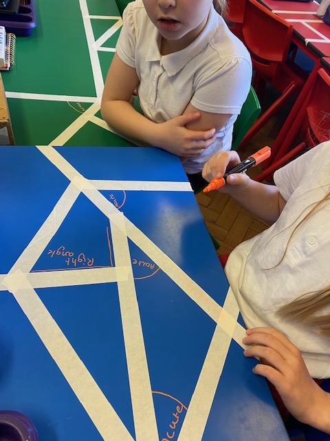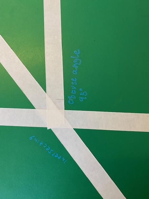 There was masking tape all over our desks after break! We labelled the types of lines and angles.