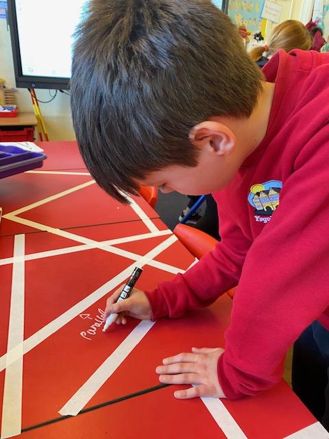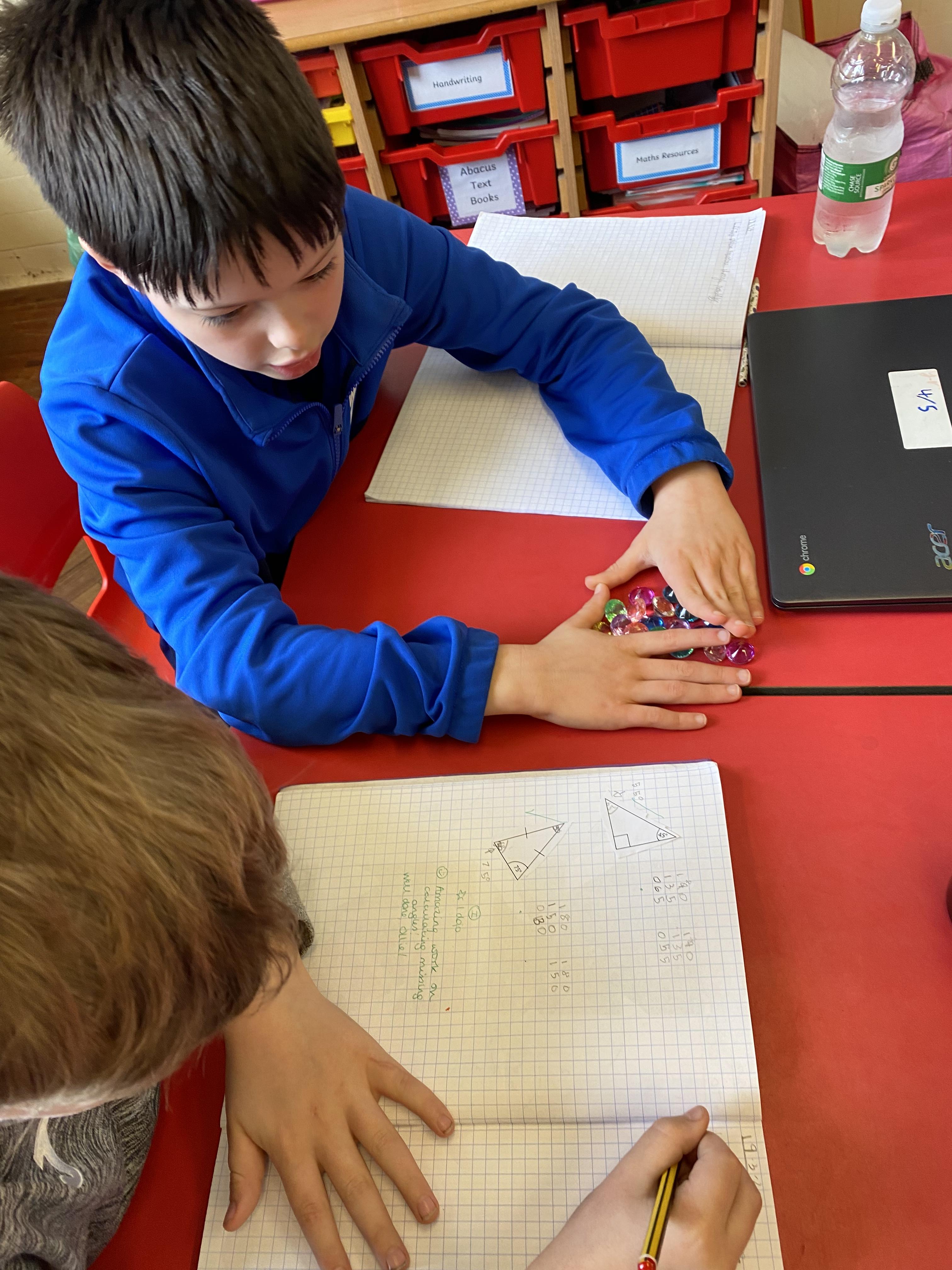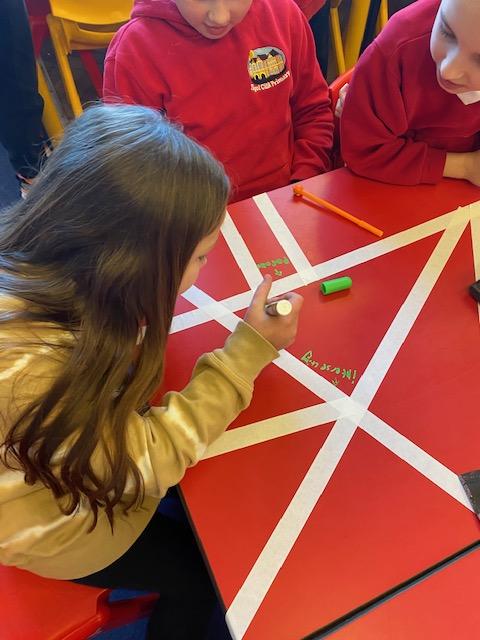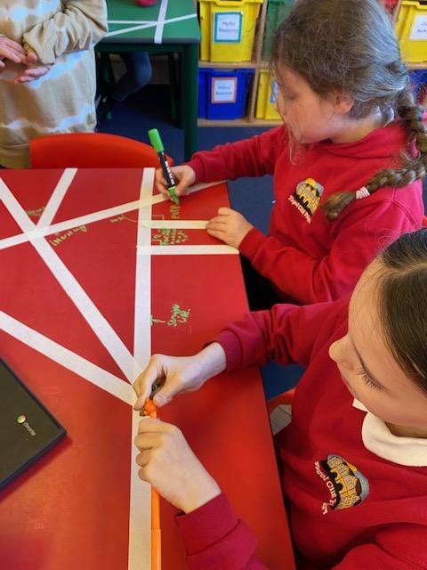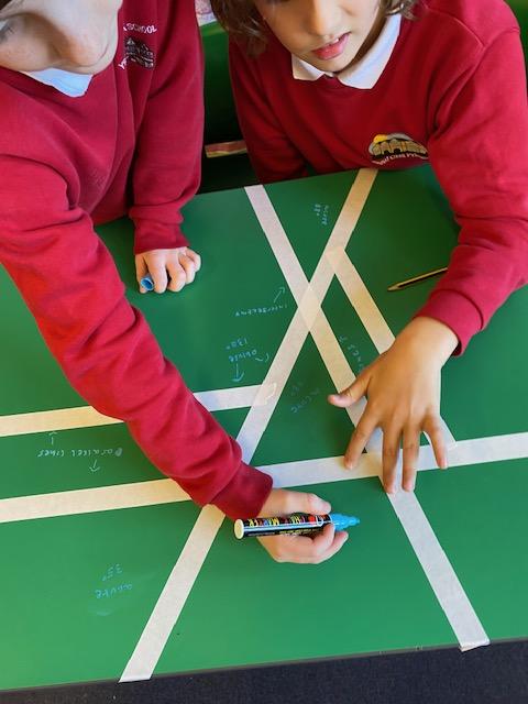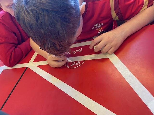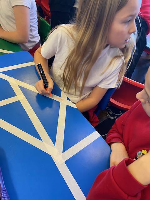 There was masking tape all over our desks after break! We labelled the types of lines and angles.