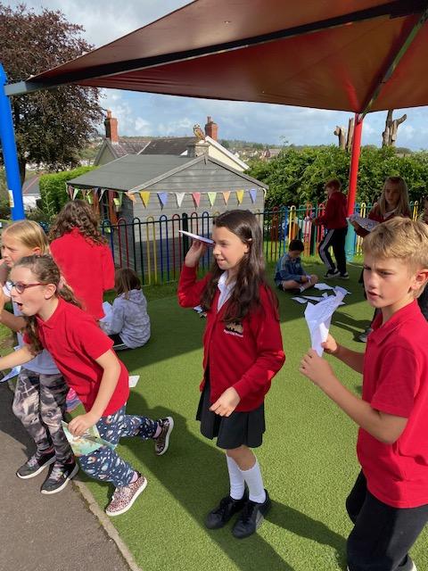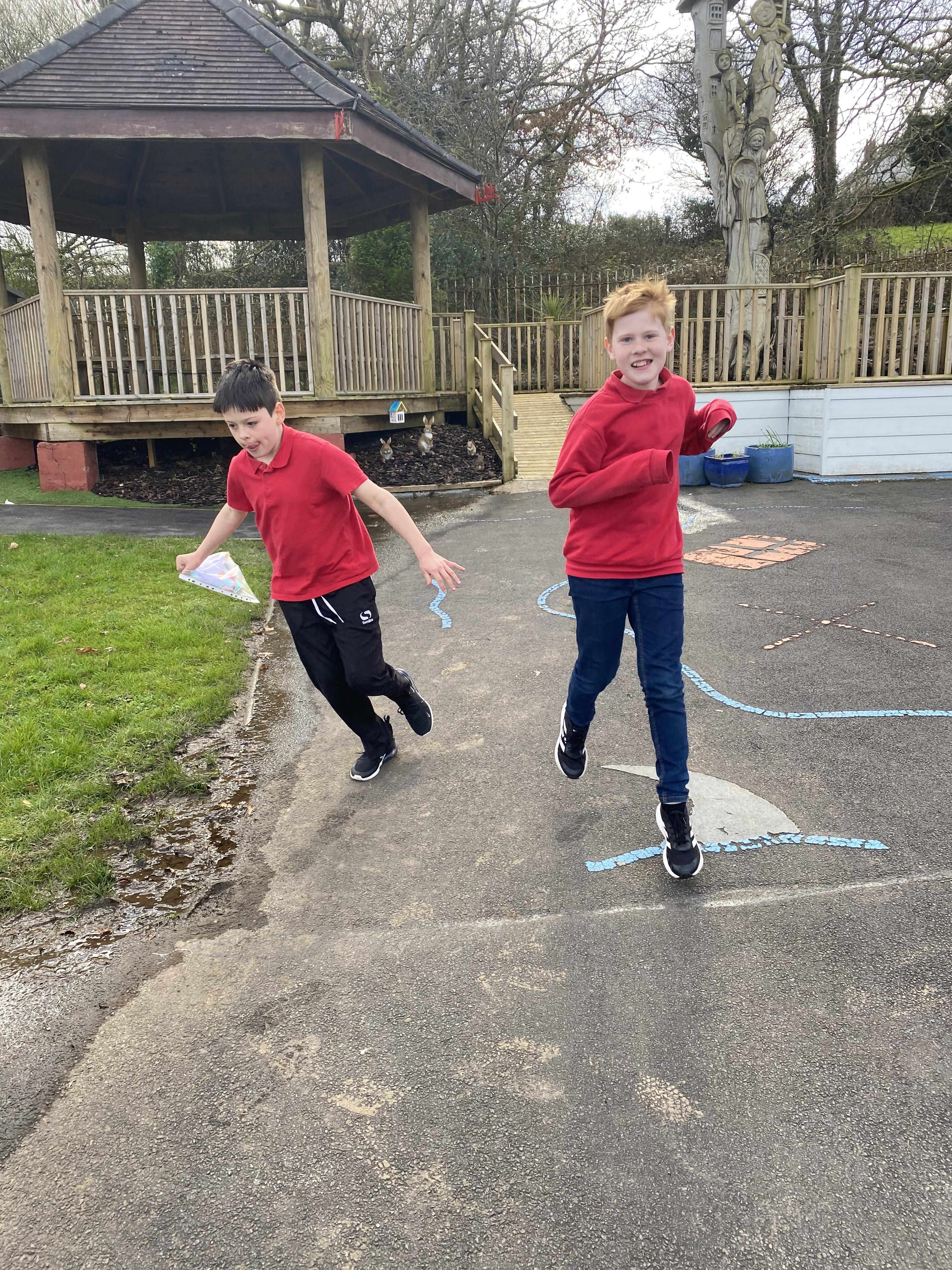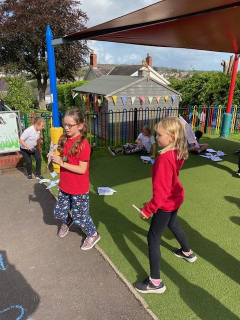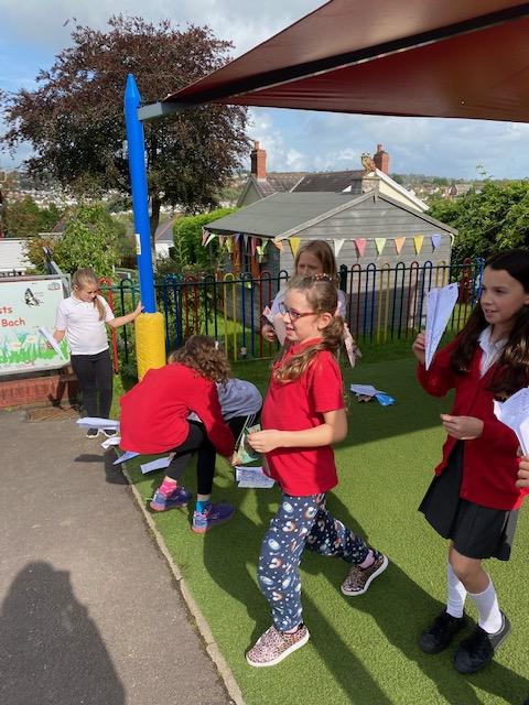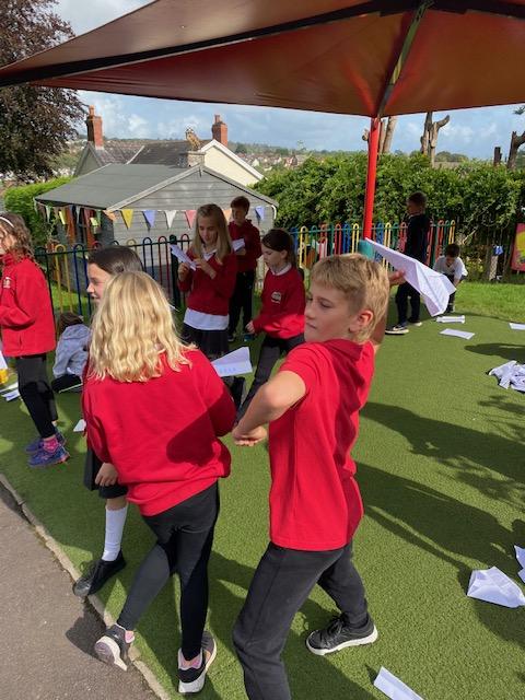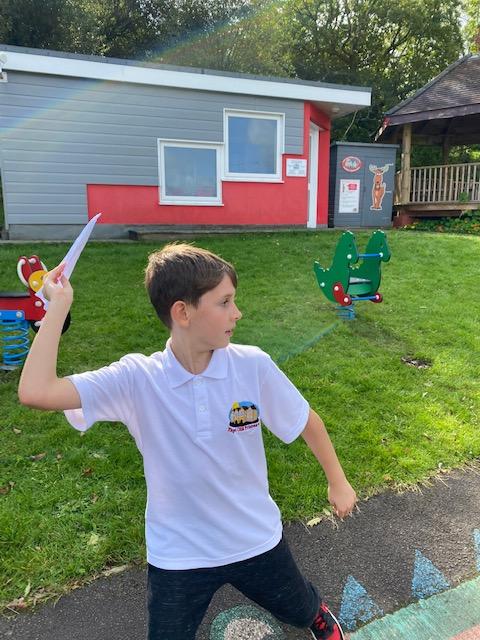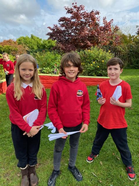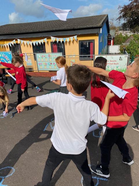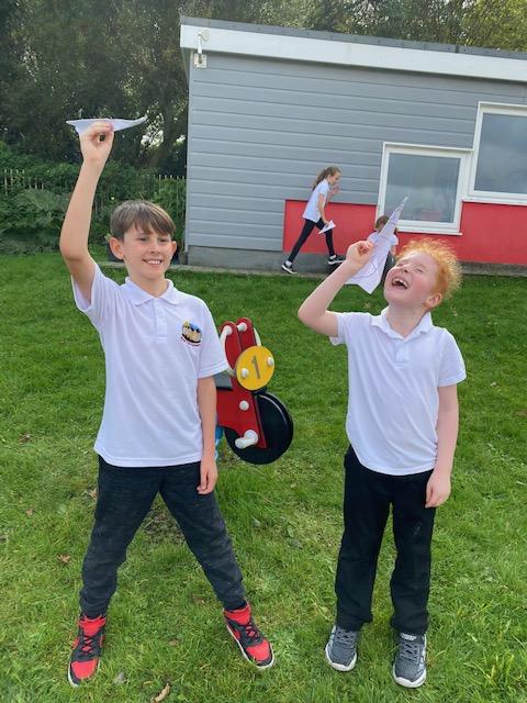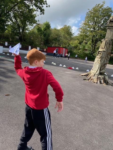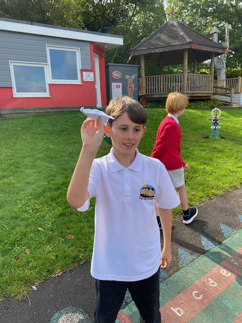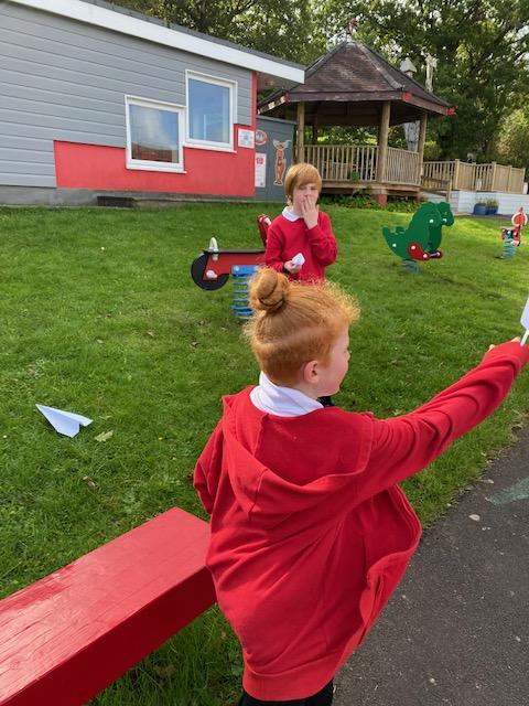 We have been experimenting with paper aeroplanes to see which designs stay in the air longest and which fly furthest!